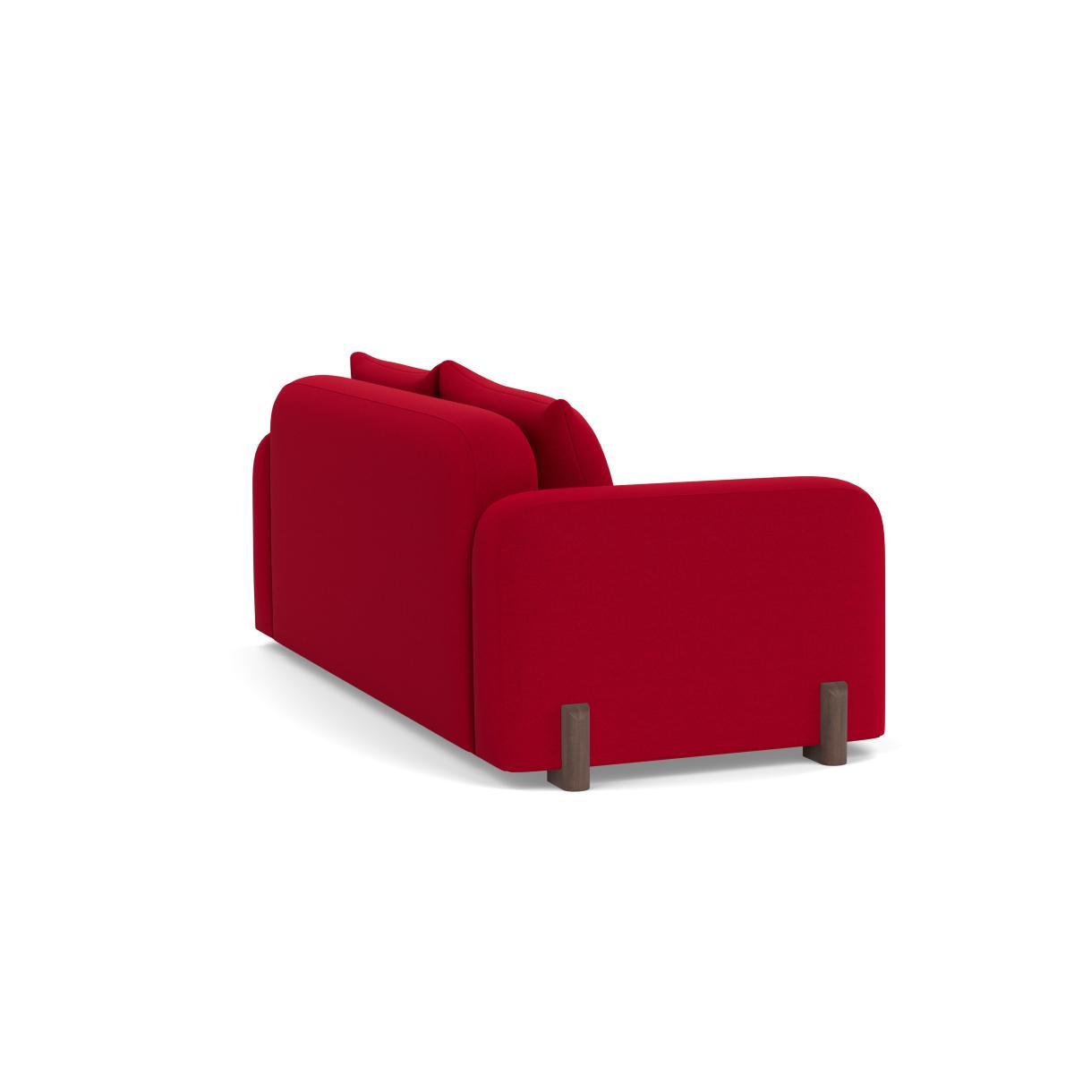 I love this sofa's bold red tone, which makes it a real statement piece, especially in neutral or minimalist interiors. Its Melton wool upholstery adds a touch of sophistication and texture, making it versatile enough for contemporary, industrial, or even classic schemes. The walnut-stained oak feet bring warmth and a natural contrast that grounds the design. Practical styling tips include pairing it with soft, neutral cushions or layered throws to balance the vivid colour. It works well in open-plan living rooms, paired with wooden or metal accents, or even in eclectic spaces where it can act as a colourful focal point amid a mix of styles. Its dual function as a sofa and occasional bed makes it particularly useful in smaller flats or guest accommodation.