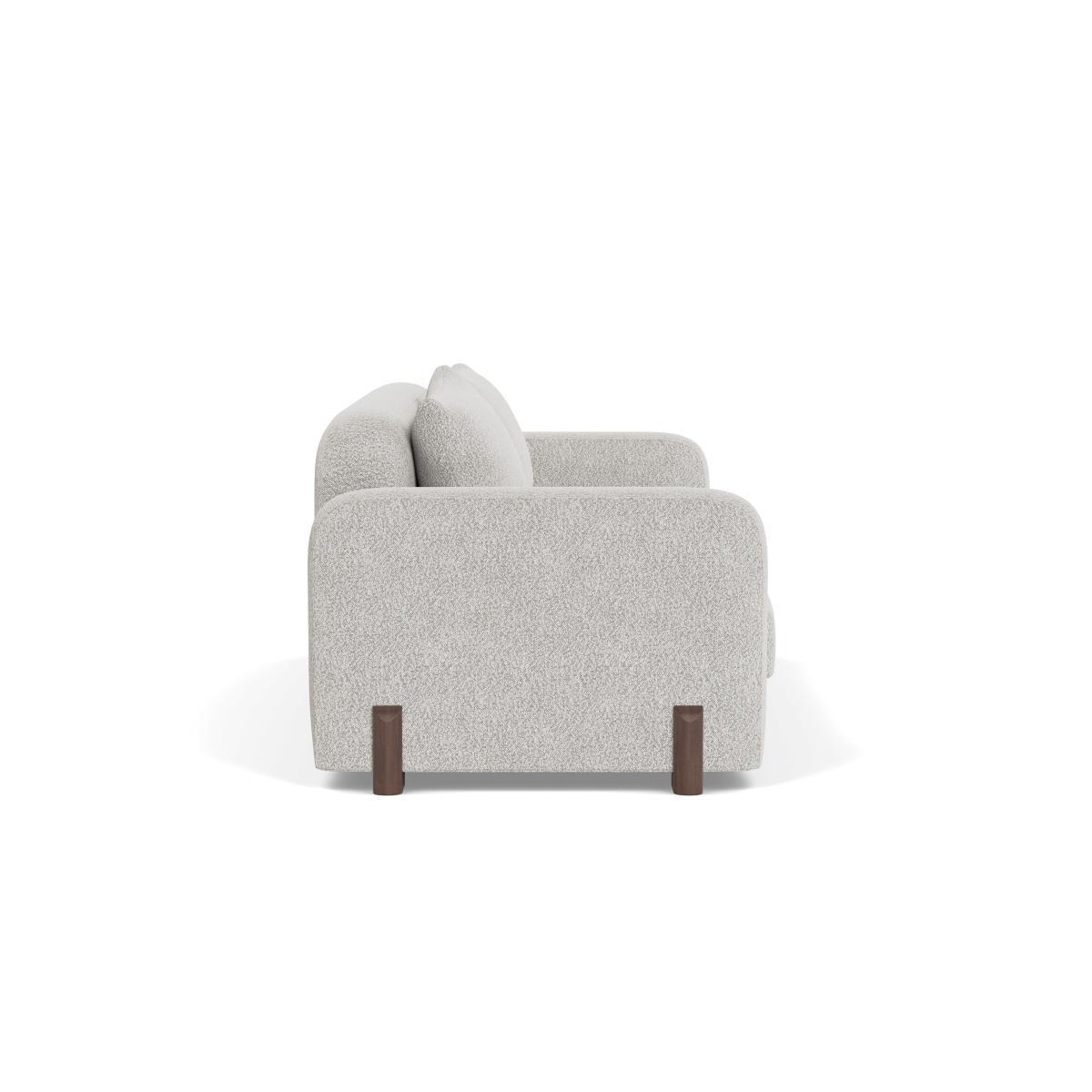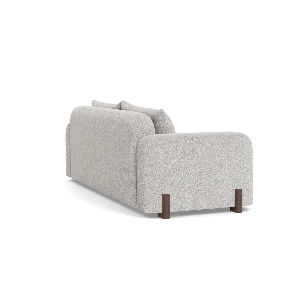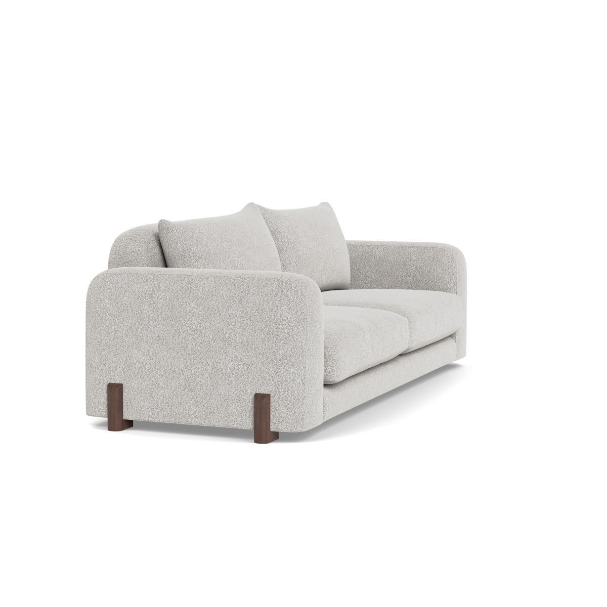 I love this sofa for its versatile, understated style and inviting chunky boucle texture, which brings warmth and tactile interest to a space. It works particularly well in modern or contemporary interiors, especially those with neutral palettes or natural materials, as the soft ecru fabric pairs beautifully with wood or stone accents. The walnut-stained oak feet add a touch of subtle sophistication and grounding to the look, while also allowing for easy styling around it. Practical tips include layering with patterned cushions or throws to add colour and personality, and placing it in a well-lit corner to enhance its plush texture. As a foamsac, it’s great for flexible living spaces that might need occasional guest accommodation, making it as functional as it is stylish.