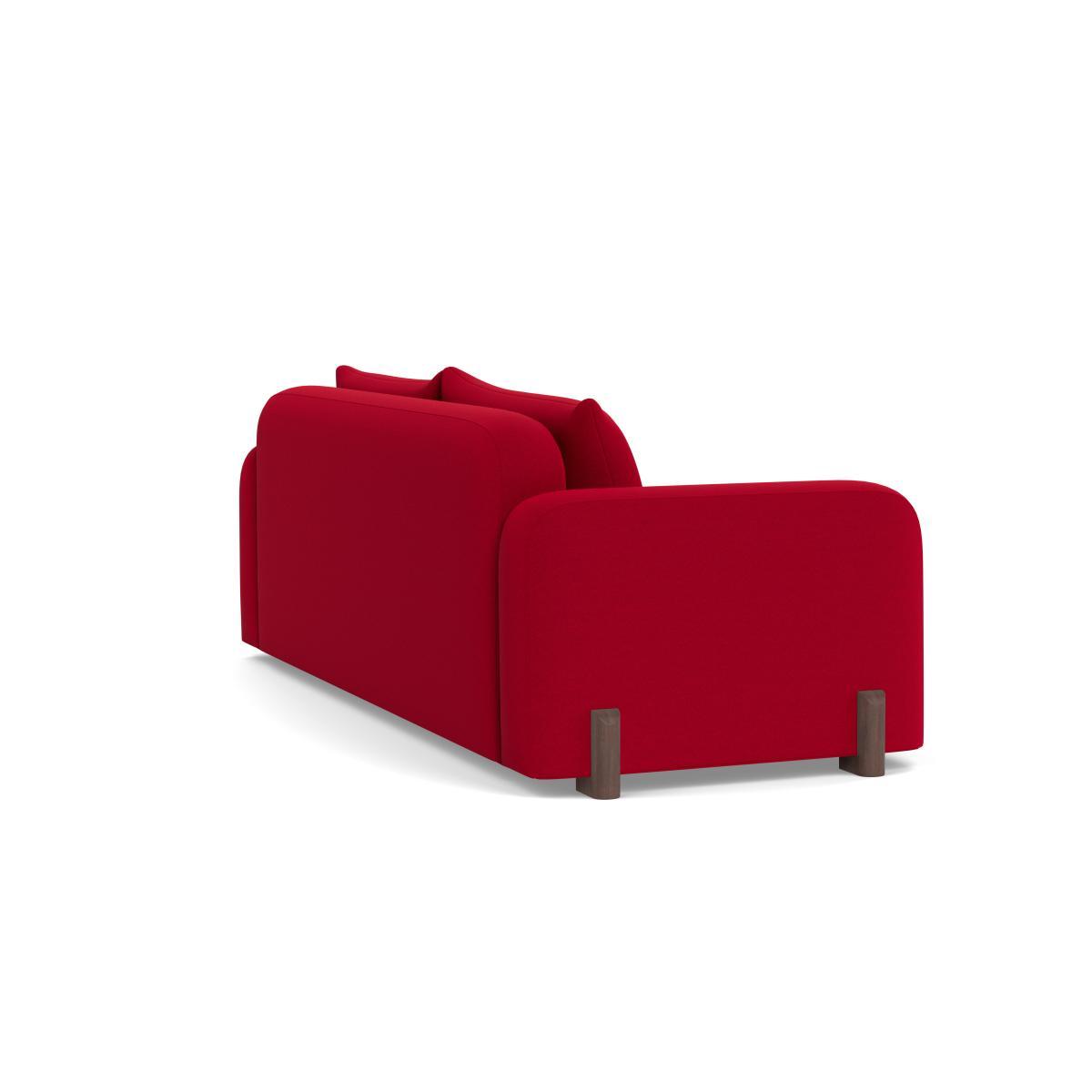 I love this sofa for its bold, contemporary appeal combined with its versatile colour and texture. The rich red oxides make it a statement piece, especially in neutral or minimalist interiors, providing a pop of colour without overwhelming the space. Its lean, streamlined silhouette fits well in modern and Scandinavian-inspired schemes, but it can also add contrast in more traditional settings. Practical styling tips include pairing it with neutral tones or black-and-white artwork to let the colour stand out, or adding colourful cushions and throws for a cosy, inviting look. Its pinkish Melton wool upholstery gives it a soft, tactile quality that’s perfect for a relaxed yet stylish living area, and the fact it’s a sofabed adds functional value for visitors or small space living.