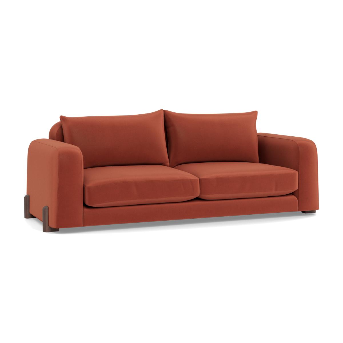 I’d choose the Nuvola 4-seater for its clean lines, generous proportions and hard-wearing velvet - the tawny hue brings warmth without overpowering the room. It suits contemporary, mid-century or Scandi schemes equally well: pair it with a light oak coffee table, pared-back pendant lighting and a couple of neutral linen cushions for contrast. To keep the look current, surround it with textured rugs and metallic accents (think brass side tables or black-frame shelving) and add a simple wool throw in a complementary tone.