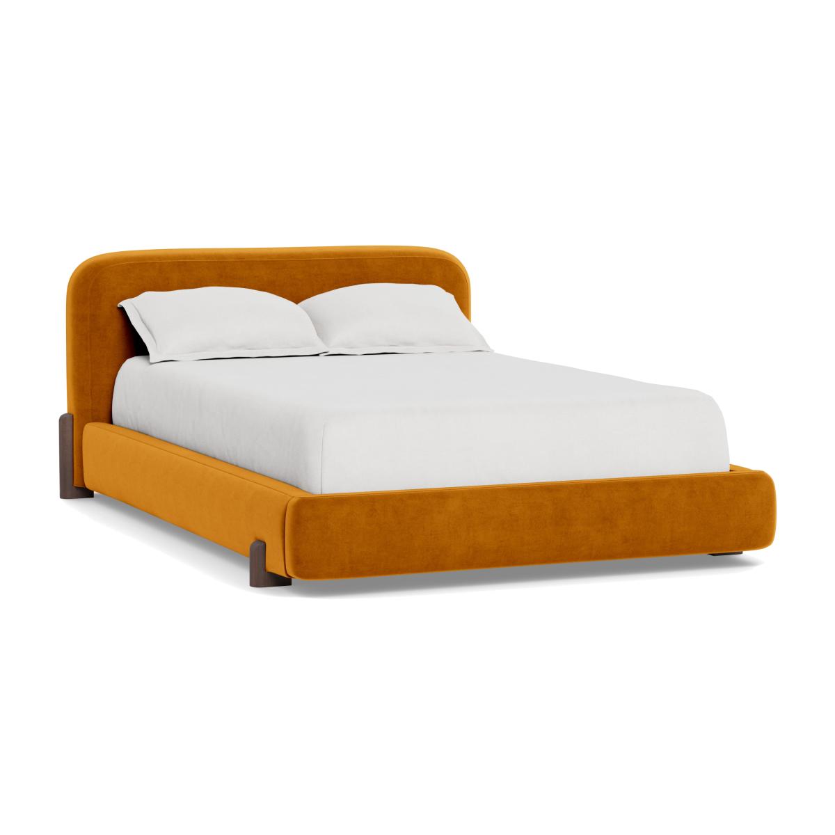 Heal's Nuvola King Bed Smart Luxe Velvet Cognac Walnut Stained Oak Feet - Heal's UK Bedroom Furniture