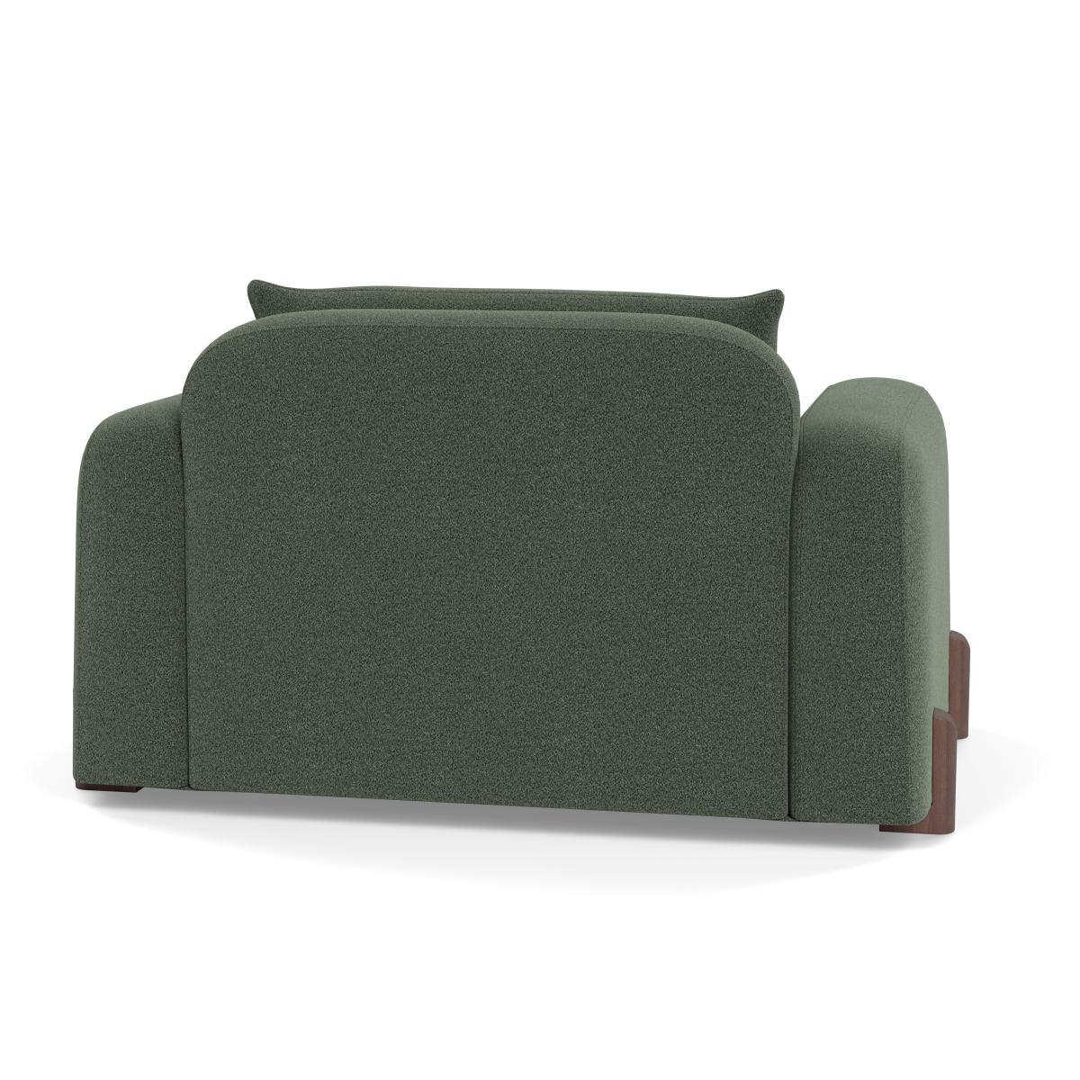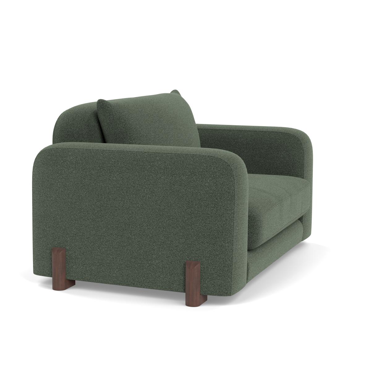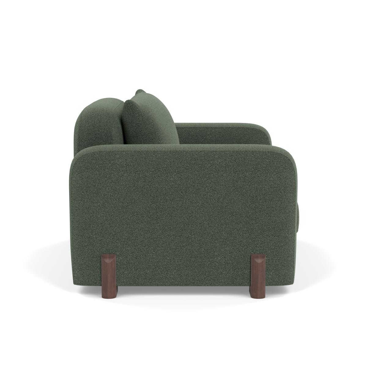 I love this loveseat for its versatile and timeless appeal. The boucle fabric adds a cosy, tactile element that works beautifully in both modern and classic interiors, while the fern green offers a refreshing pop of colour without overwhelming a space. It’s perfect for smaller living areas or as a complementary piece in a larger lounge, providing comfortable seating without taking up too much room. For styling, pair it with neutral-toned cushions or textured throws to enhance its cosy vibe and add visual interest. The walnut stained feet give it a warm, organic touch, which pairs nicely with natural materials like wood or rattan, making it an adaptable and appealing choice for a variety of decor styles.