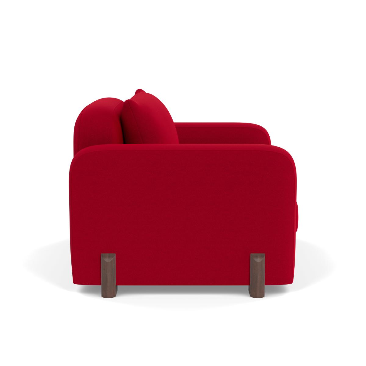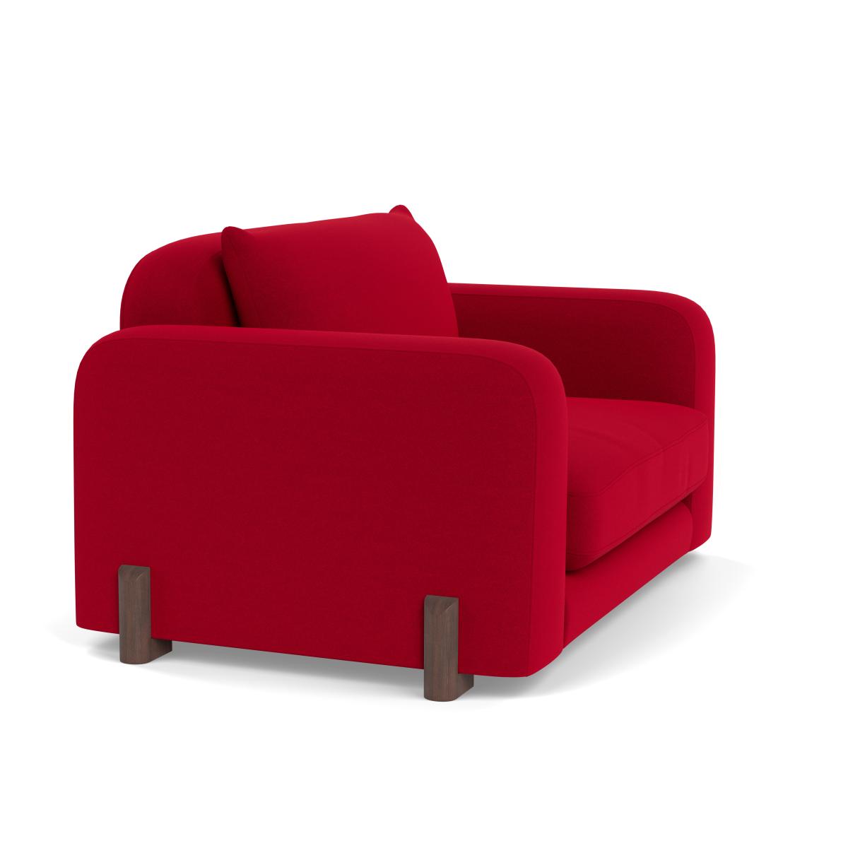 I love this loveseat for its bold colour and versatile style. The red oxide Melton wool fabric adds a rich, tactile quality that anchors both contemporary and traditional interiors, making it a statement piece without overwhelming a space. It's ideal in modern, minimalist settings with neutral tones, but can also work well in eclectic schemes where vibrant accents are welcome. Practical styling tips include pairing it with textured cushions in contrasting or complementary colours to add visual interest, and grounding it with a simple, neutral rug. Its clean lines and cosy proportions make it perfect for small living rooms or reading nooks, where it invites relaxing and daily use.