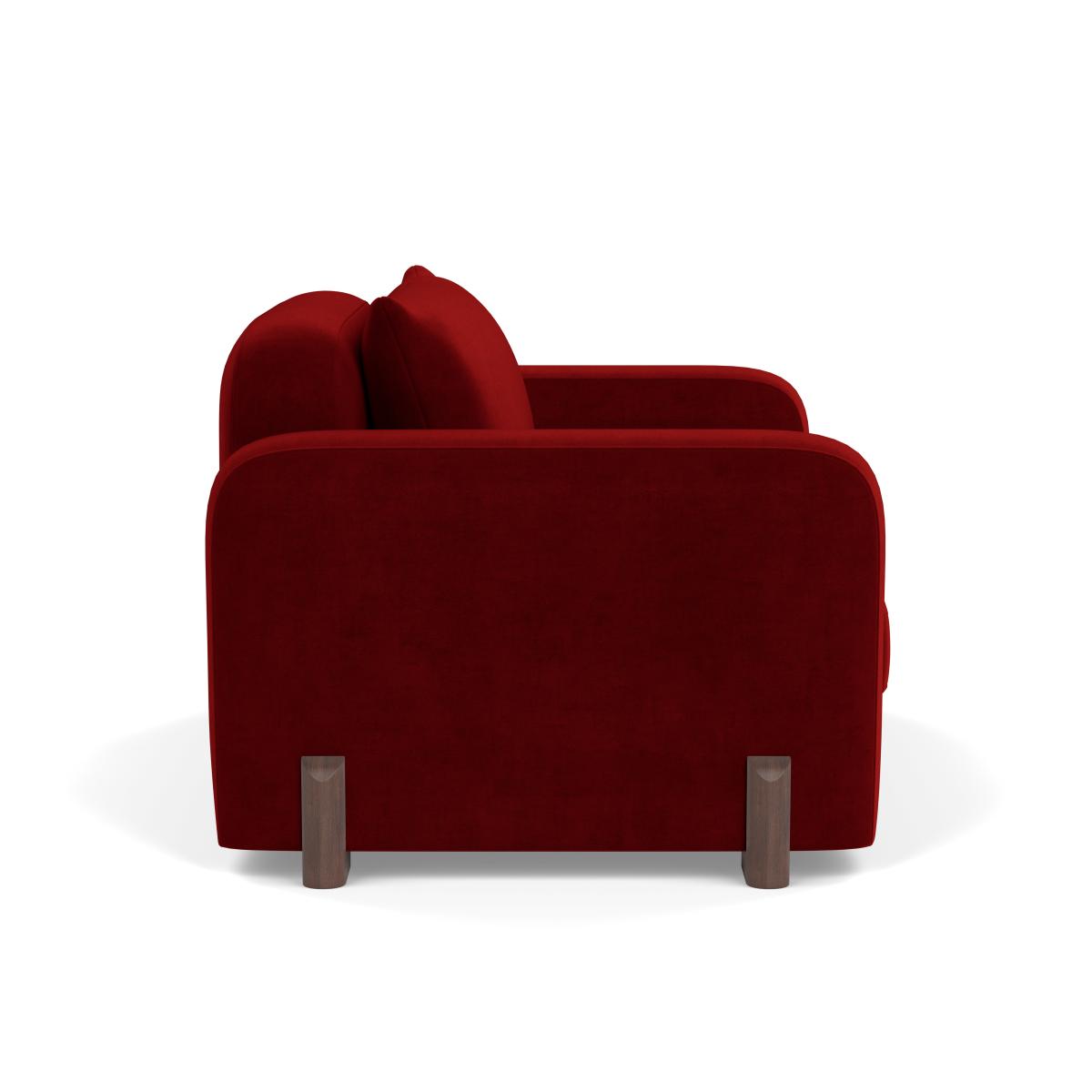 I love this sofa for its plush velvet finish and its versatile, contemporary silhouette. The deep mulberry hue adds richness and can work beautifully as a statement piece in neutral-toned living rooms or complement a similarly bold colour palette. Its natural oak feet introduce a subtle warmth that balances the luxury fabric. This loveseat fits well in both modern and eclectic interiors, especially when paired with layered textures like soft throws and patterned cushions. To style around it, consider keeping surrounding furniture sleek and simple to let the sofa shine, or add metallic accents for a touch of sophistication. It’s an excellent choice for creating an inviting, cosy corner in a small living space or a chic addition to a larger lounge area.