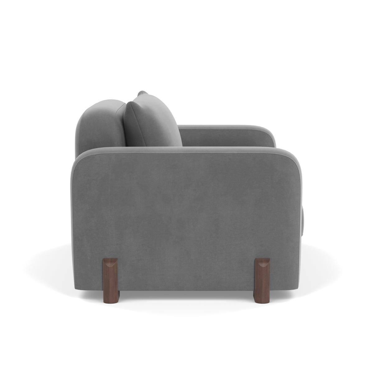 I love this little loveseat for its sleek, contemporary design and versatile colour. The smart velvet in mercury adds a touch of luxury without feeling overly formal, making it ideal for both modern and transitional interiors. Its walnut stained feet lend warmth and grounding to the piece, helping it work well in neutral schemes, pastel palettes, or even darker, more dramatic settings. Practical styling tips include pairing it with layered cushions for comfort or placing it alongside a textured rug to soften the look. It's perfect for smaller living rooms or for creating a cosy corner, and its understated elegance makes it a flexible addition that can be dressed up or down depending on your styling choices.