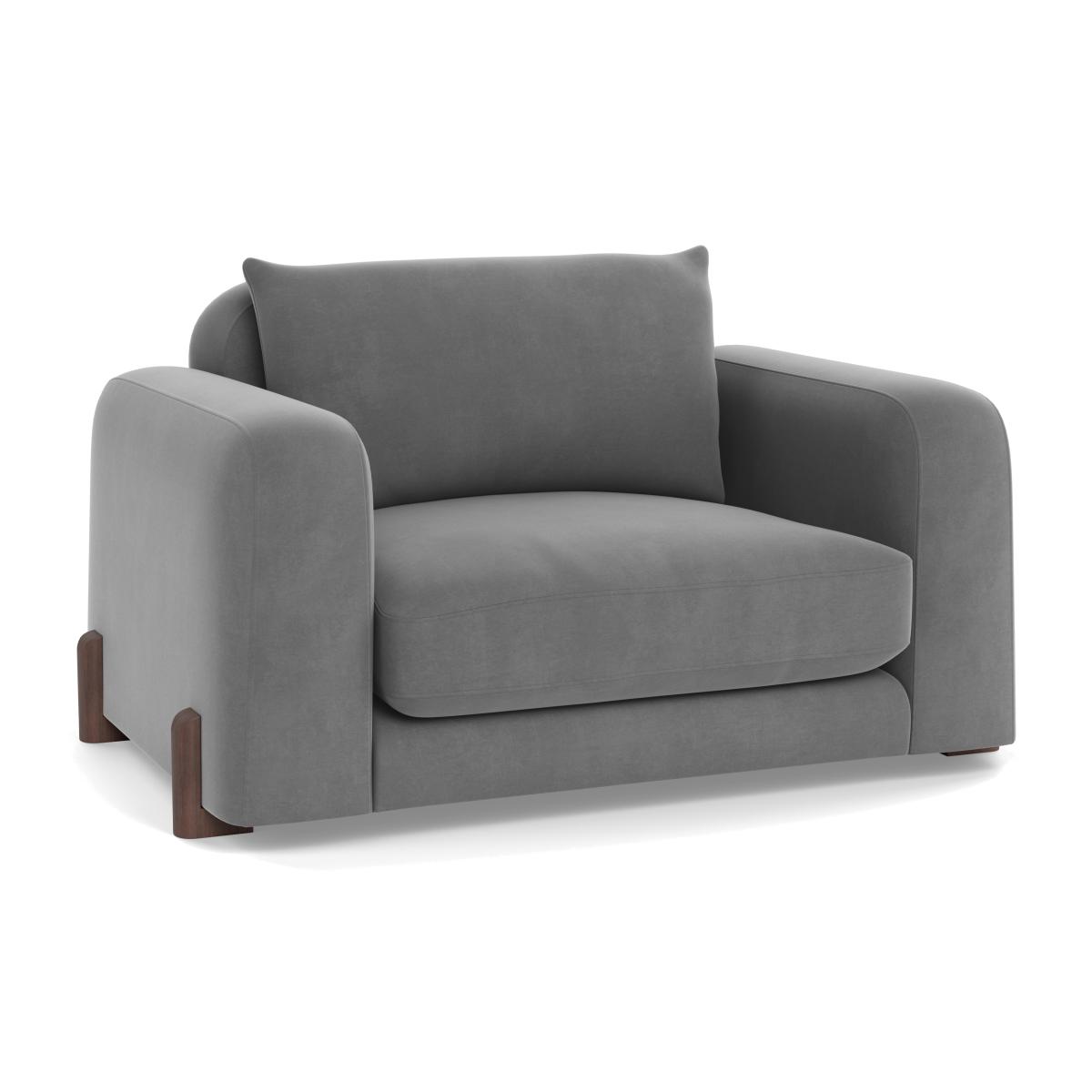 Heal's Nuvola Loveseat Smart Velvet Mercury Walnut Stained Feet