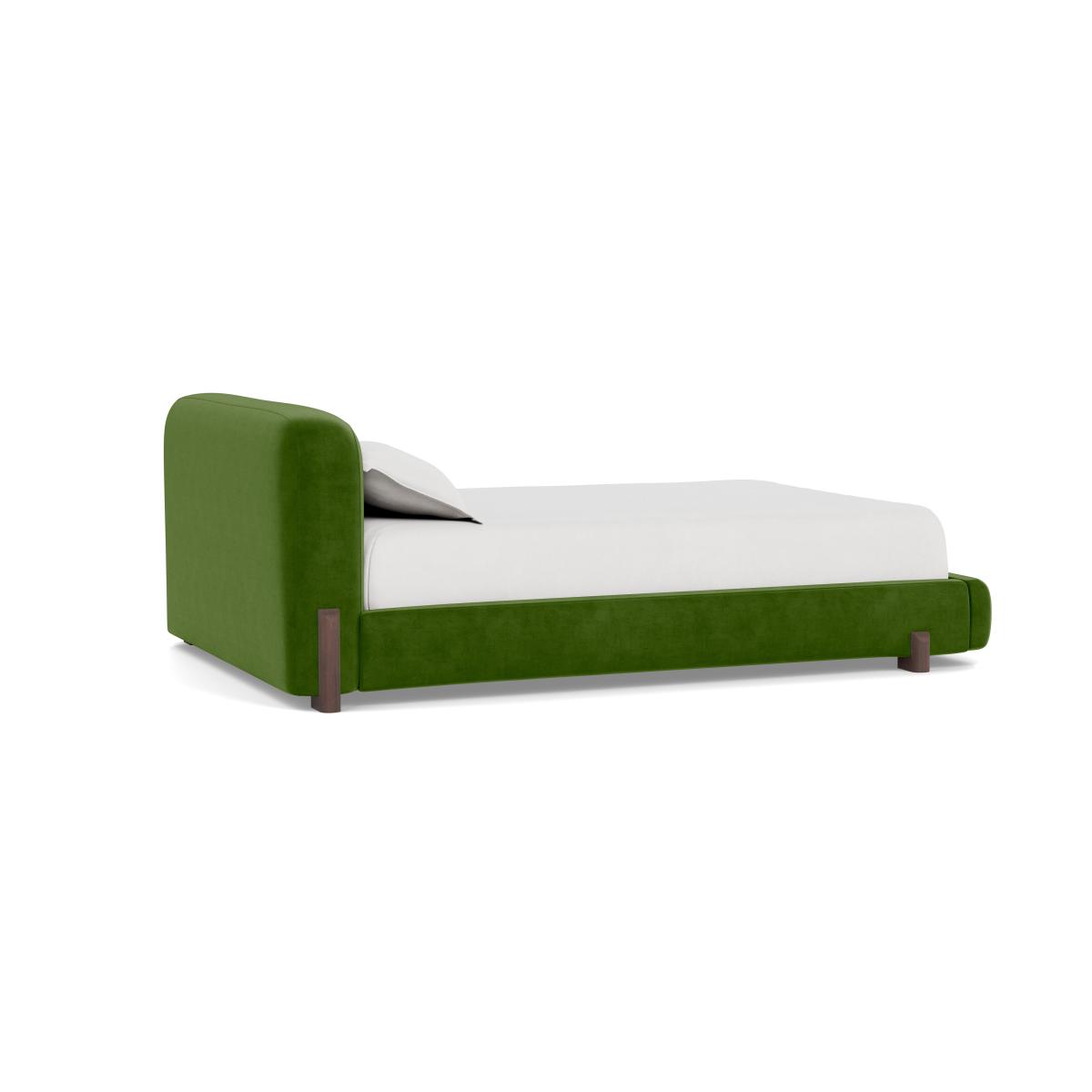 Heal's Nuvola Super King Bed Smart Luxe Velvet Grass Walnut Stained Oak Feet