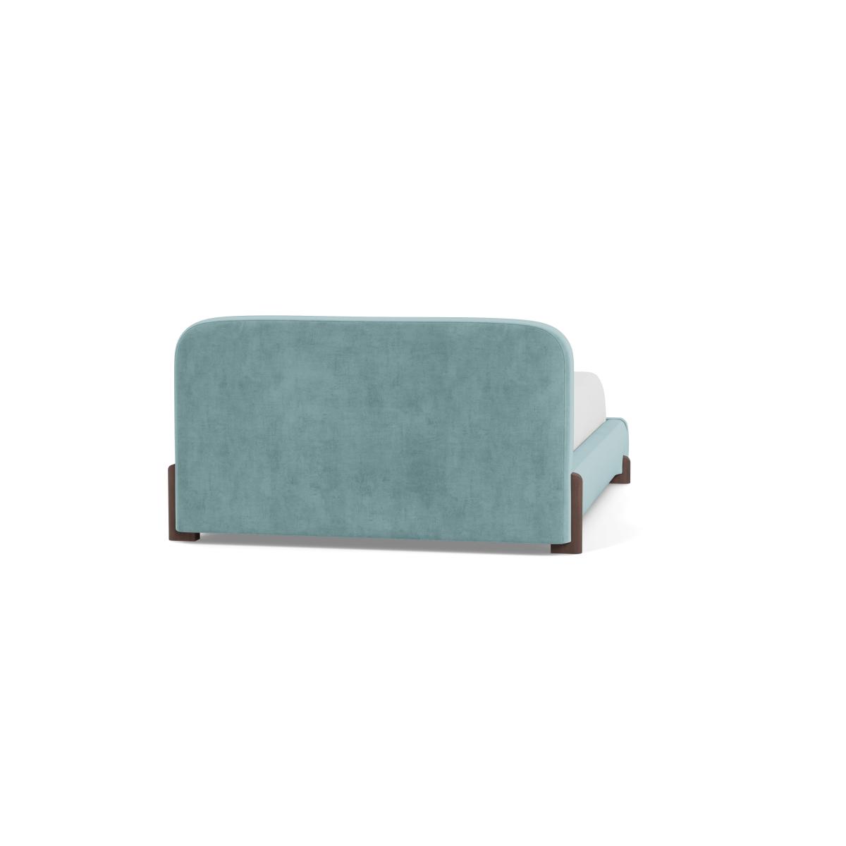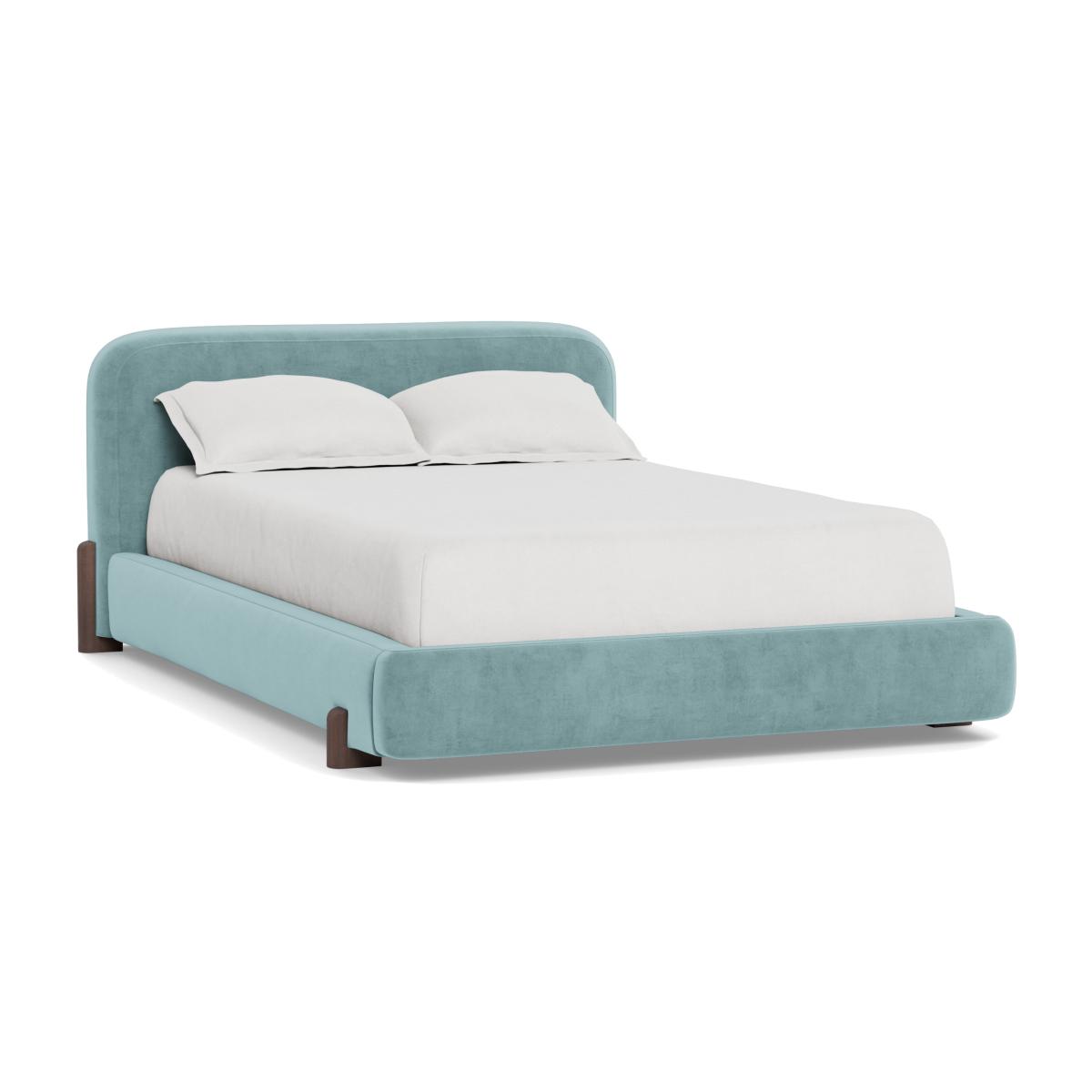 Heal's Nuvola Super King Bed Smart Luxe Velvet Mineral Blue Natural Oak Feet