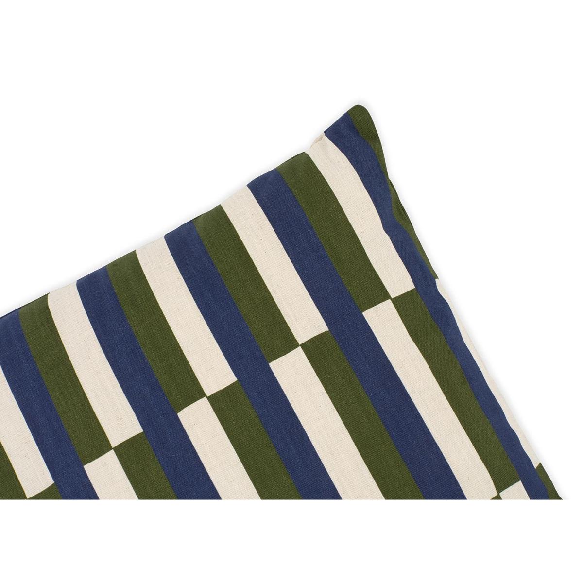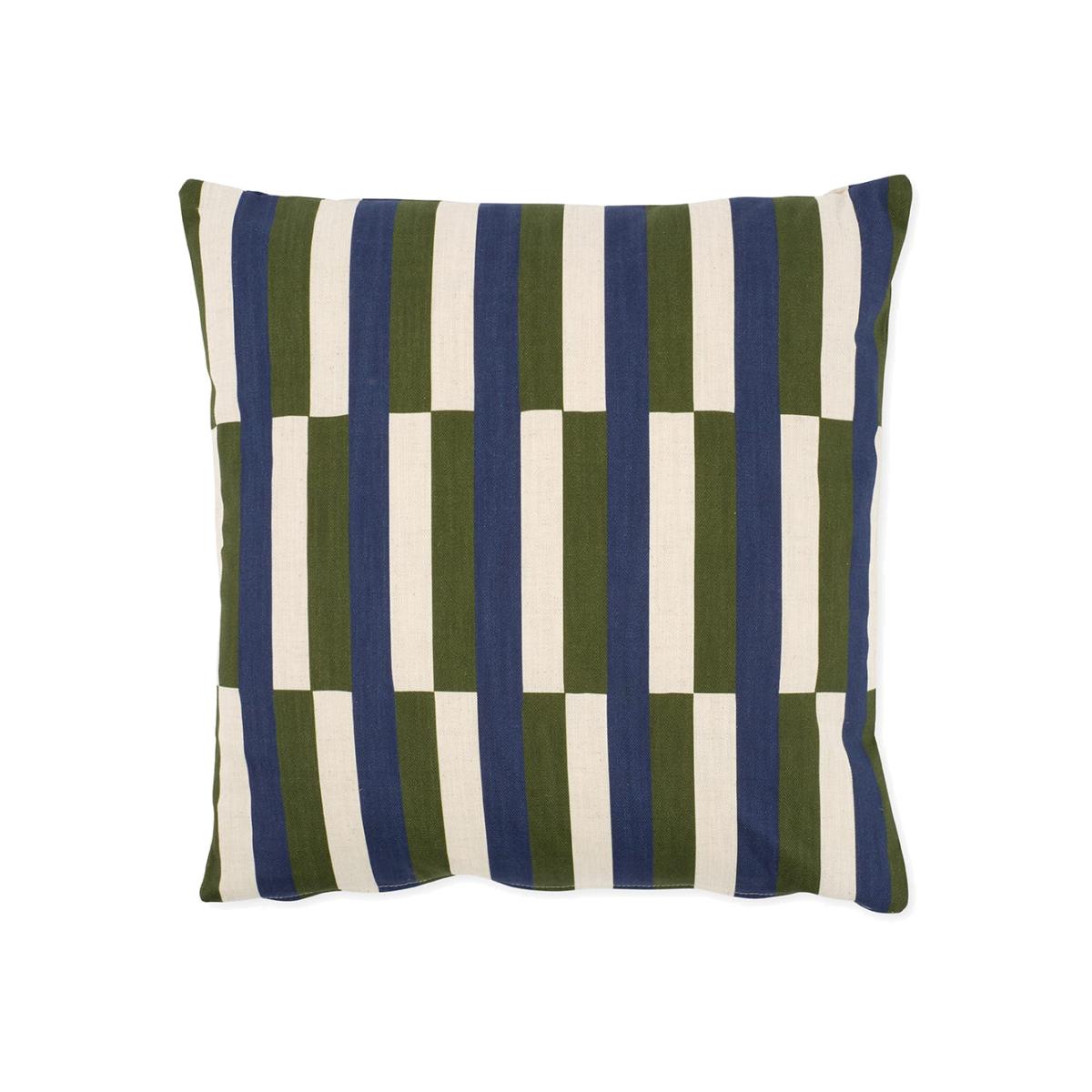 The Heal’s Offset Cushion brings bold pattern and sustainable craftsmanship to your home. Printed and made in Scotland, its navy and olive hand-drawn check design is digitally printed onto a linen mix, featuring the pattern on both the front and back. Complete with a feather pad and zip fastening, the removable cover combines comfort, style, and contemporary design in a versatile 43 x 43cm size.