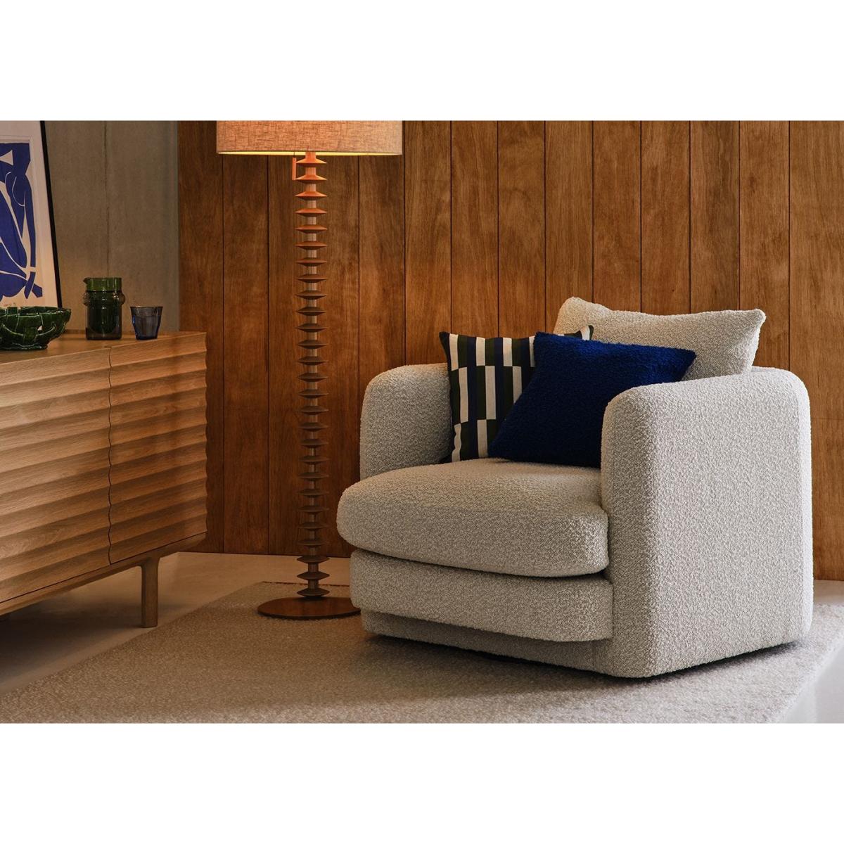 I love this cushion for its bold, graphic pattern and versatile colour palette, which makes it easy to mix and match with various interiors. It works particularly well in contemporary or Nordic-style spaces, adding a pop of colour and visual interest without overwhelming the room. Practical styling tips include pairing it with neutral-toned sofas or layering it alongside other textured cushions for a curated, lived-in look. Its 43 x 43cm size is just right for adding comfort on a sofa or armchair, making it both stylish and functional.