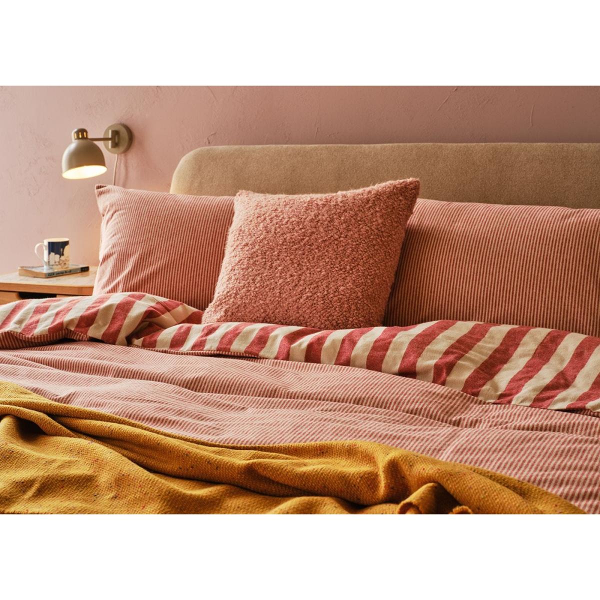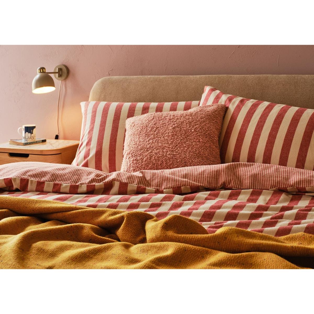 I love this bed linen set for its cosy, relaxed vibe - perfect for creating a welcoming, restful bedroom. The organic cotton flannel fabric offers a lovely soft handle and rustles gently, making it ideal for winter months. Its bold red colour and classic stripe pattern lend themselves well to various interior styles, from traditional to more contemporary schemes when paired with neutral or muted accents. For practical styling tips, consider layering with textured throws or adding complementary pillows in earthy tones to enhance the warmth of the look. This duvet set works especially well in interiors that embrace comfort and understated colour, and it’s a straightforward way to inject a pop of colour while maintaining a cosy aesthetic.