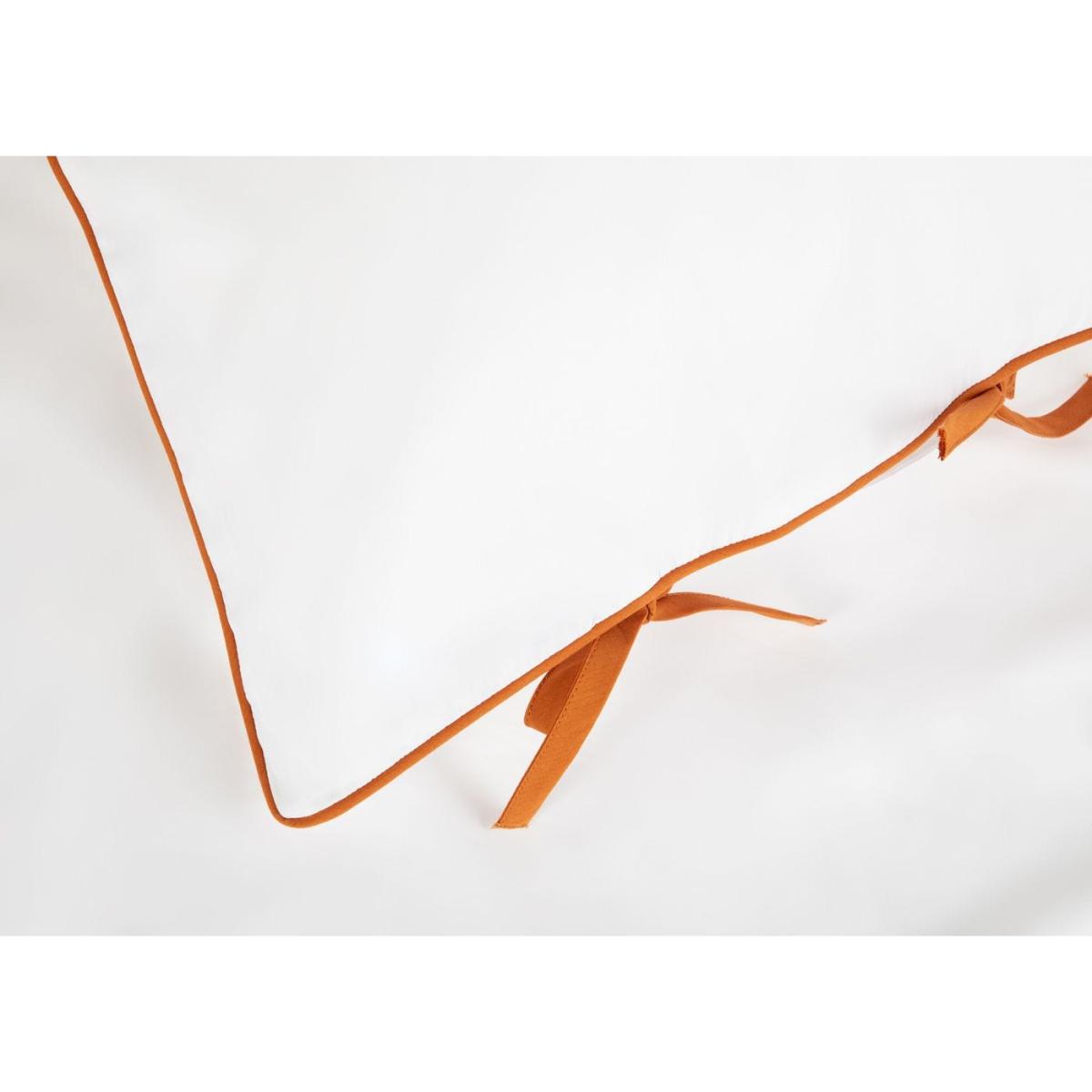 This duvet cover is a classic choice that works well in a variety of interiors, particularly those with a minimalist or Scandi-inspired aesthetic. I love the crisp white cotton with the subtle cinnamon piping - it adds a touch of warmth and detail without overwhelming the space. It's perfect for creating a calm, restful bedroom environment. For styling, consider pairing it with textured bedding or layered throws in neutral tones to add depth. The organic cotton fabric lends itself well to both modern and traditional settings, and its breathable quality makes it a practical choice for year-round comfort. Keep accessories simple to let the piping detail stand out, or play with natural materials for a cohesive, relaxed look.