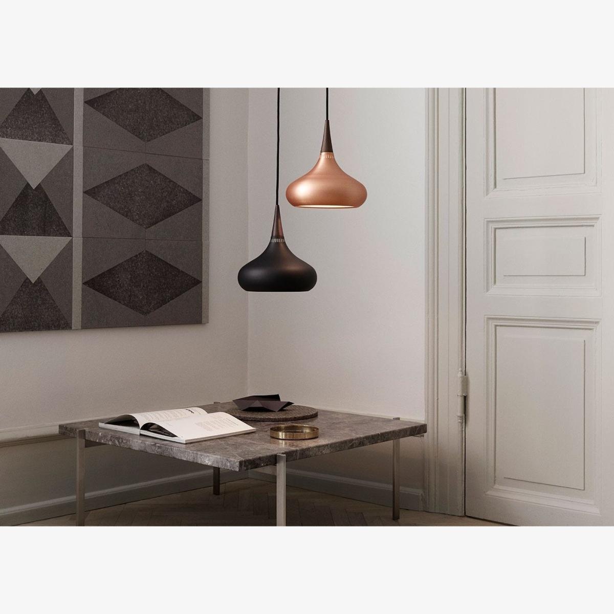 Originally designed by Jo Hammerborg in 1963, Fritz Hansen relaunched the Orient Pendant Light in 2013. The organically shaped shade is hand-spun using a wooden mould and features a low-energy light source cleverly concealed inside. When illuminated, the pendant light casts a soft, pleasant glow without any glare.