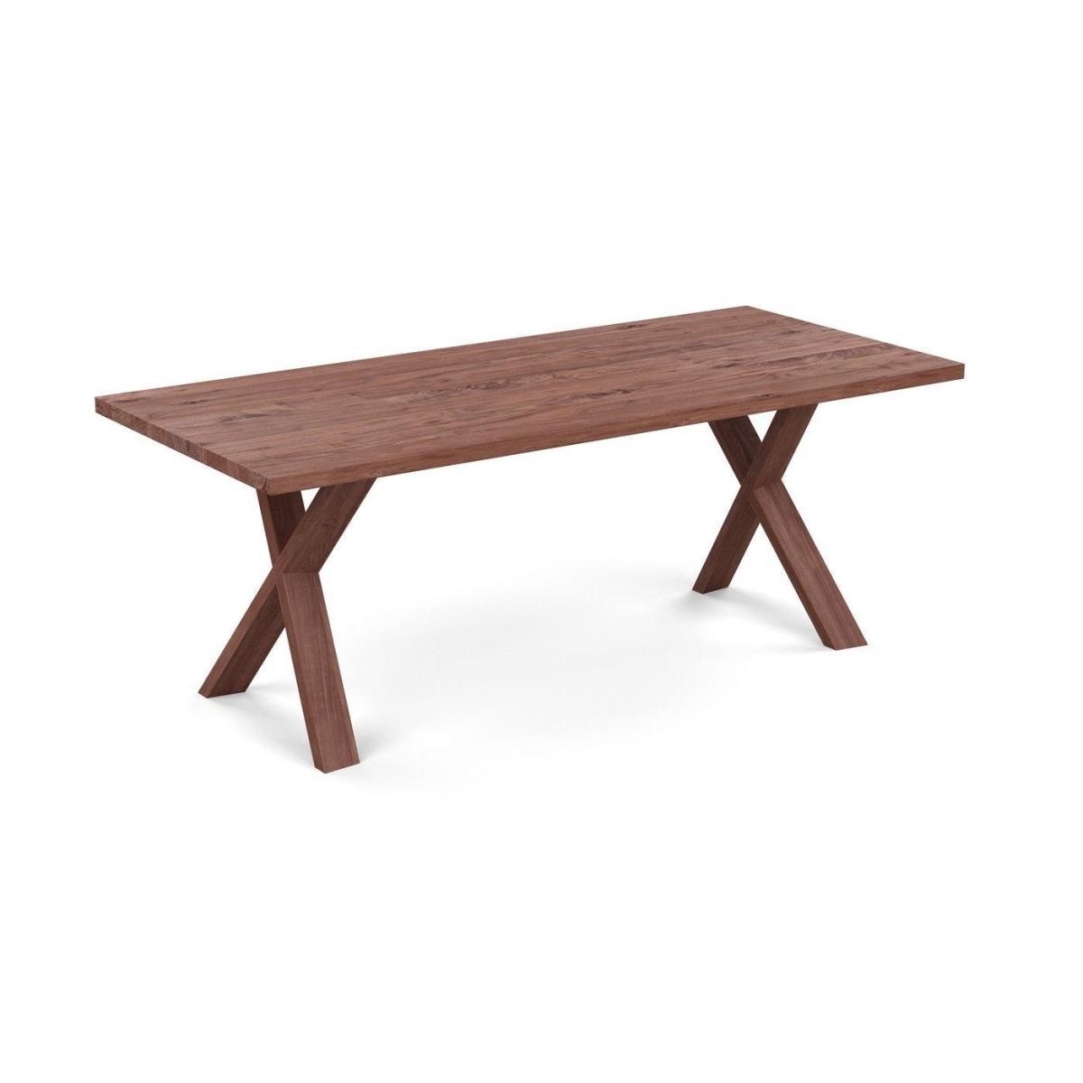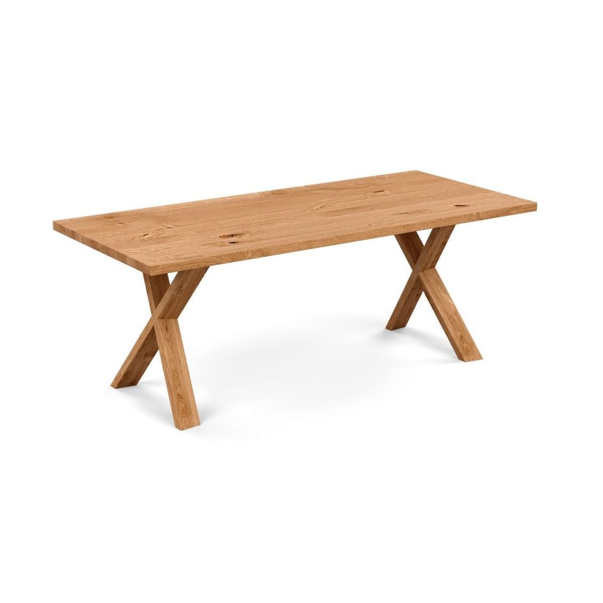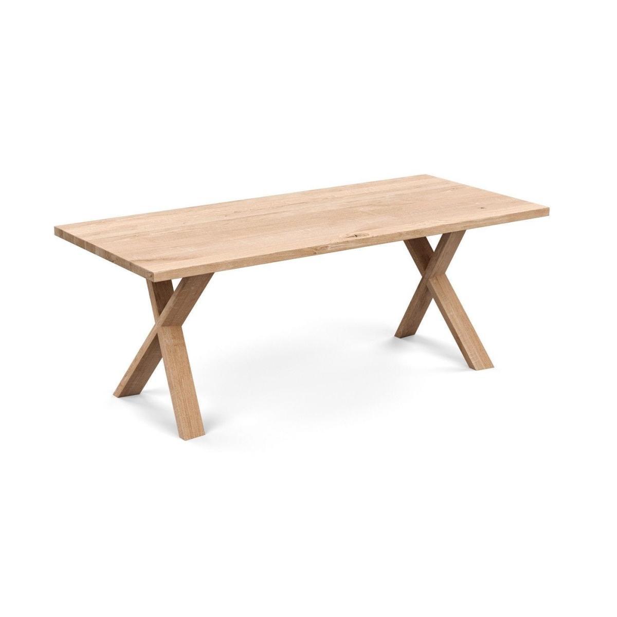 Heal's Designed by You collection of dining tables and benches allows you to create the perfect table for your space. Our tables are made of solid oak or walnut in an oiled finish and are available in seven lengths, two widths, and six different wood finishes and three different edge profiles to create a table that is the perfect fit for your home. Grain, knots and cracks are a natural property of all solid wood and add beauty and interest. Each piece is unique and will have a different grain pattern and variances in shading and colour. This is the charm of solid wood and is a different look to veneers which are more uniform. The oiled finish will enable the table to last a lifetime with a little love & care. The Oslo table has a modern refined timber criss-cross base with beautiful angles.