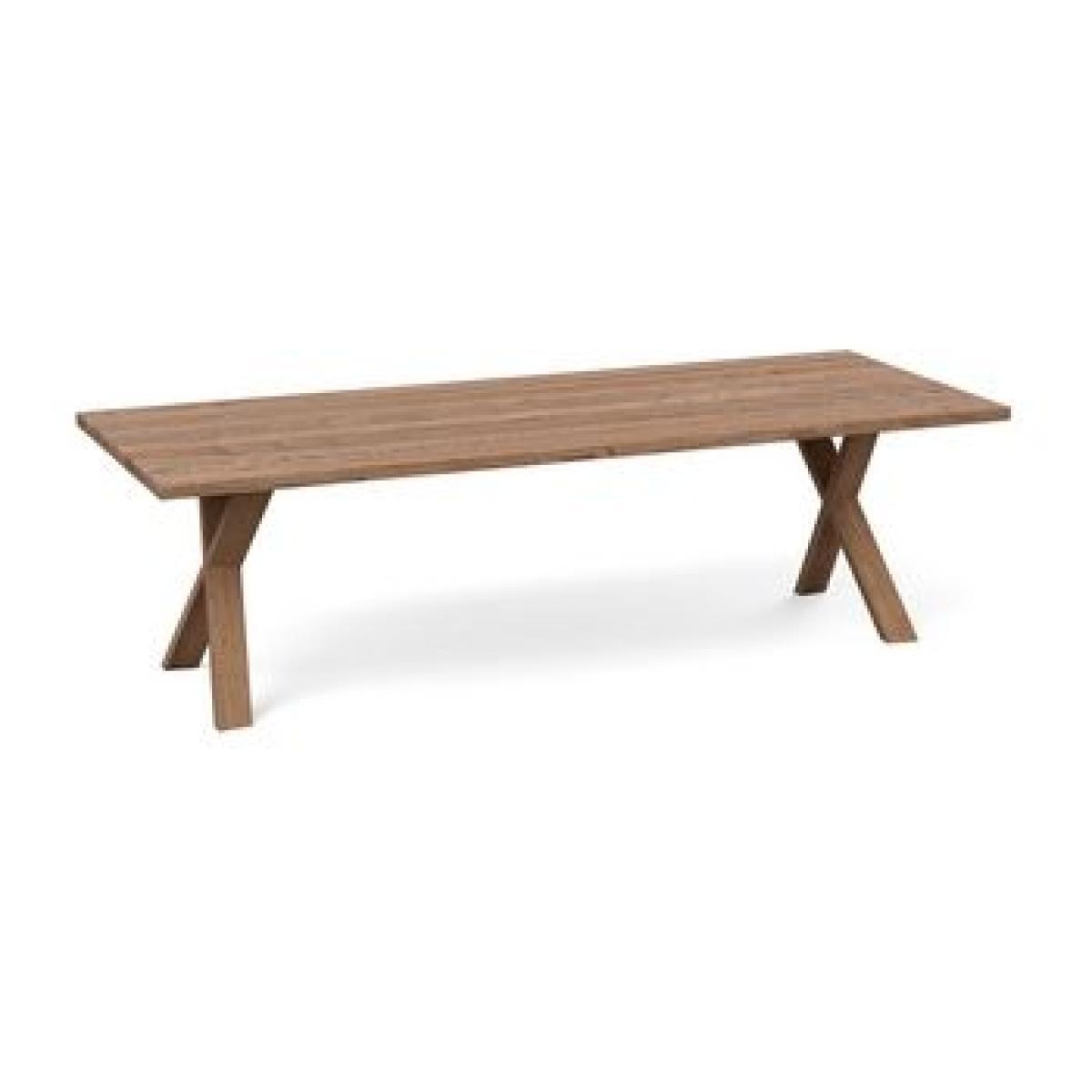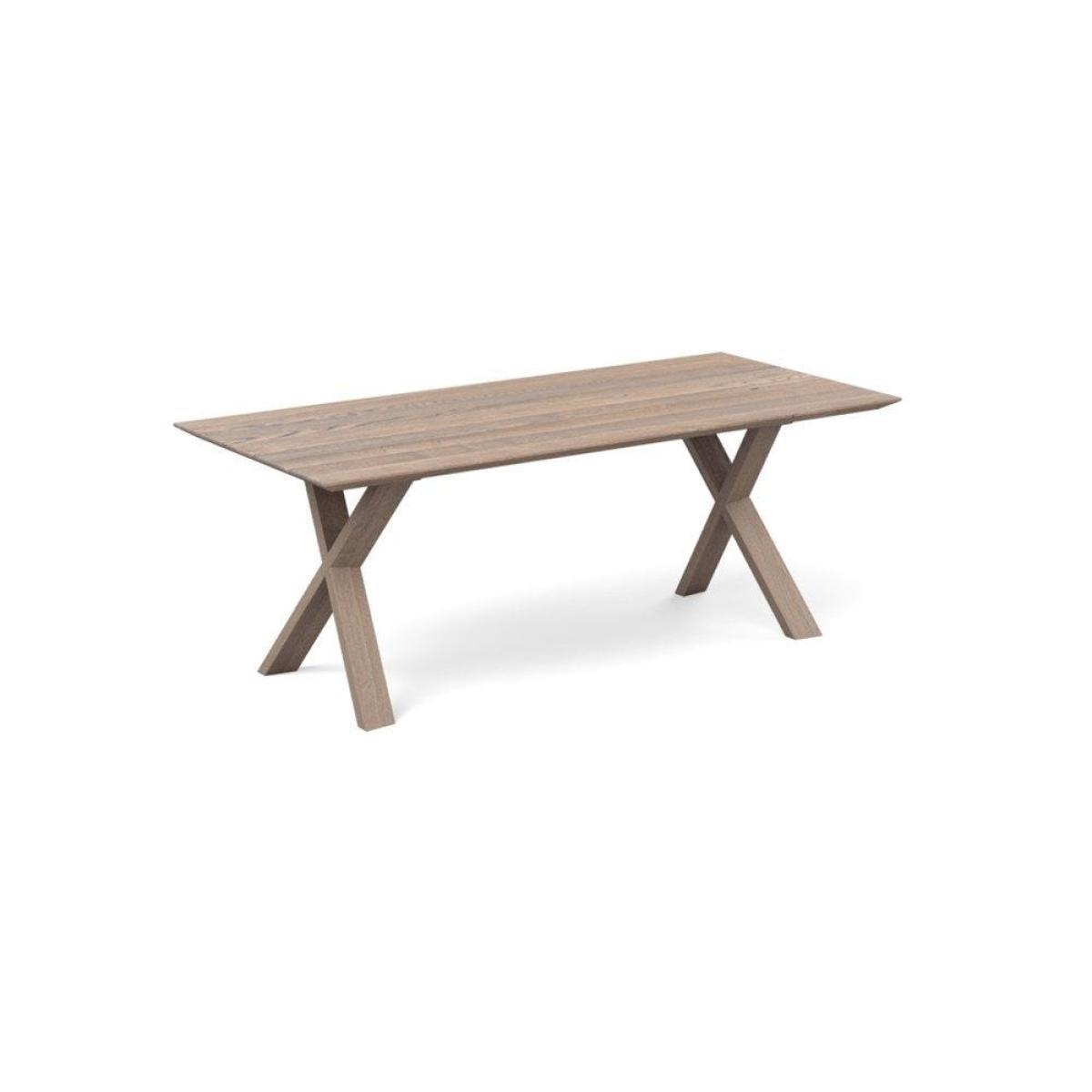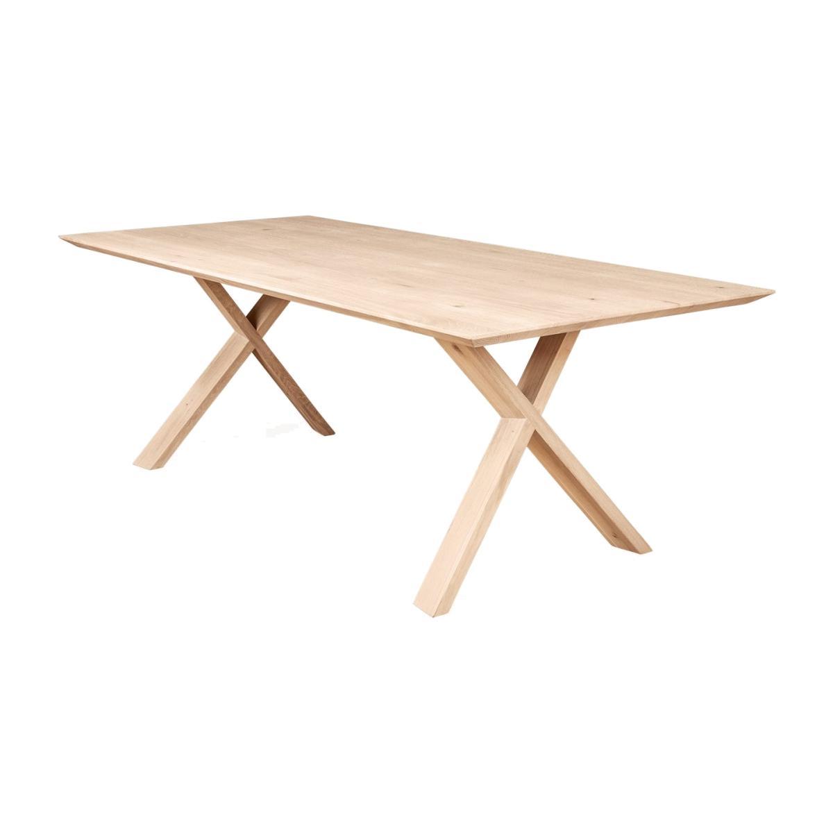 Heal's Designed by You collection of dining tables and benches allows you to create the perfect table for your space. Our tables are made of solid oak or walnut in an oiled finish and are available in seven lengths, two widths, and six different wood finishes and three different edge profiles to create a table that is the perfect fit for your home. Grain, knots and cracks are a natural property of all solid wood and add beauty and interest. Each piece is unique and will have a different grain pattern and variances in shading and colour. This is the charm of solid wood and is a different look to veneers which are more uniform. The oiled finish will enable the table to last a lifetime with a little love & care. The Oslo table has a modern refined timber criss-cross base with beautiful angles.