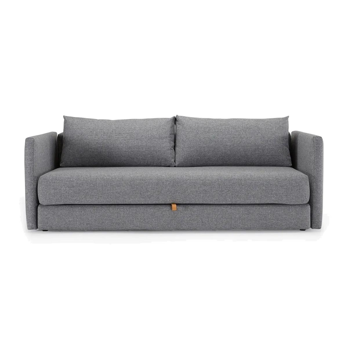 A contemporary Sofa Bed designed to overcome the challenge of living in a few square metres, the Oswald easily and smoothly changes into a bed, with its legs automatically folding out, making for a convenient and fast operating sofa bed. With hidden storage compartments, the sofa bed is ideal for small living environment. The Oswald is softly rounded and minimalistic in textured fabric and leather handles, with simplicity and storage both being prolific design features.