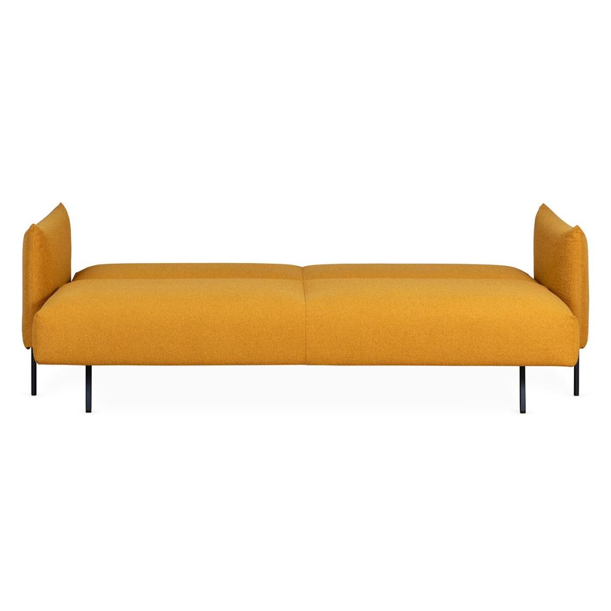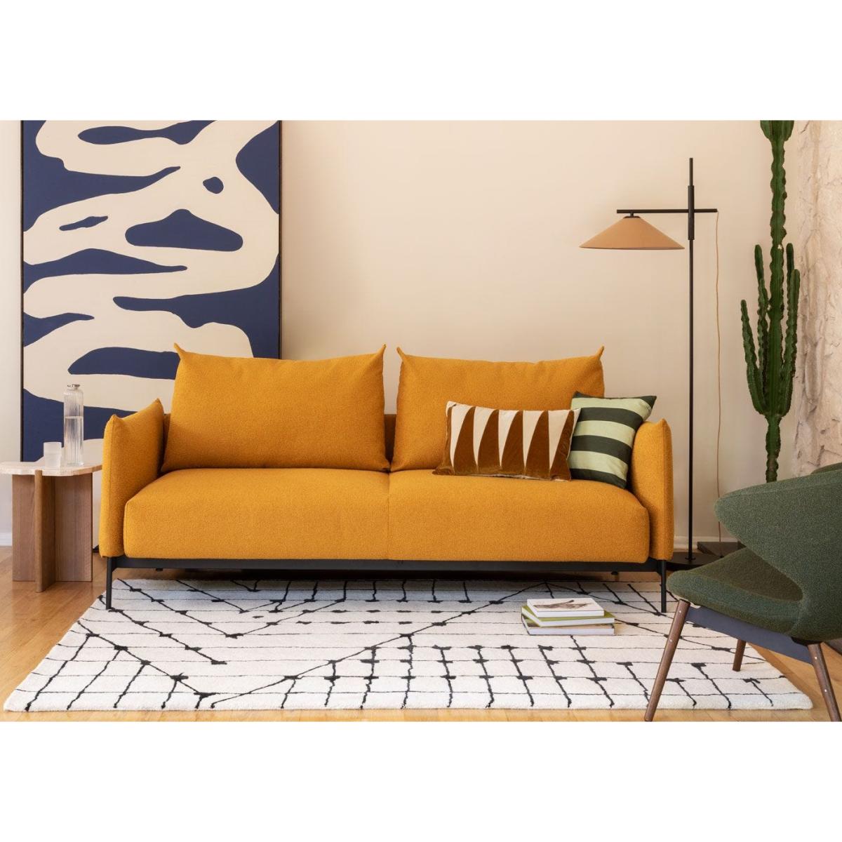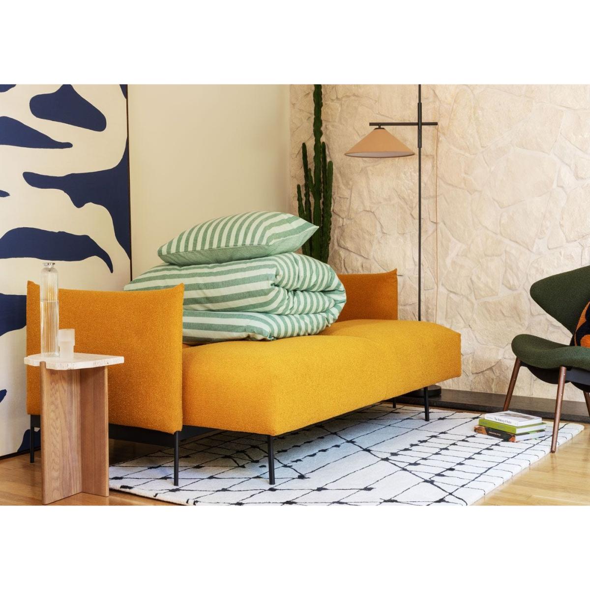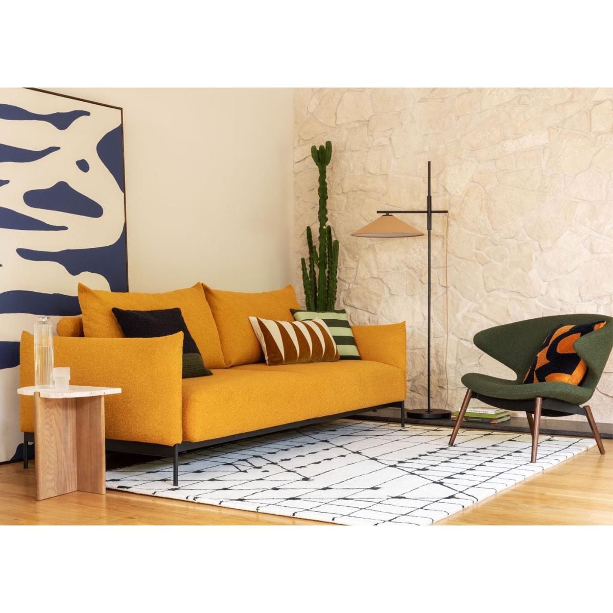 I’m a fan of the Otto sofa bed in ochre bouclé because its warm, tactile texture instantly lifts a room and the clever metal frame means you’ve got extra sleeping space without bulky storage. It sits equally well in a Scandi-inspired living area or a mid-century modern lounge - just layer with a sheepskin throw and muted linen cushions for a relaxed look. In a studio or spare room, it’s a real space-saver: keep surrounding décor pared back in greys or soft greens and introduce a slimline floor lamp to balance the low profile. A simple oak coffee table and a few sculptural ceramics will complete the scheme without competing with that striking ochre tone.