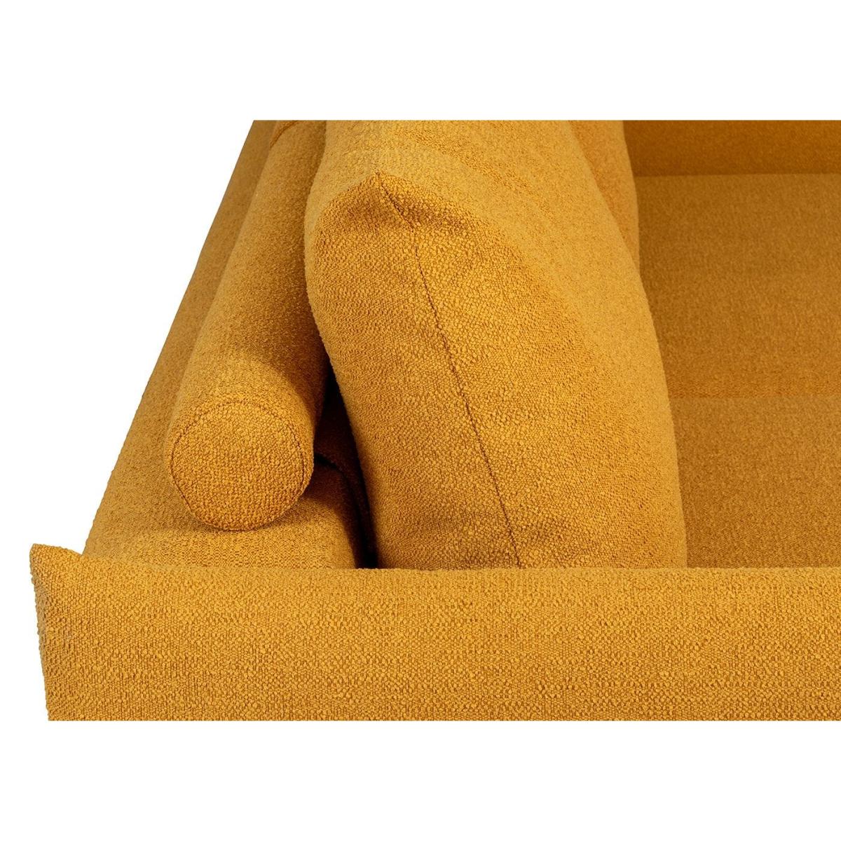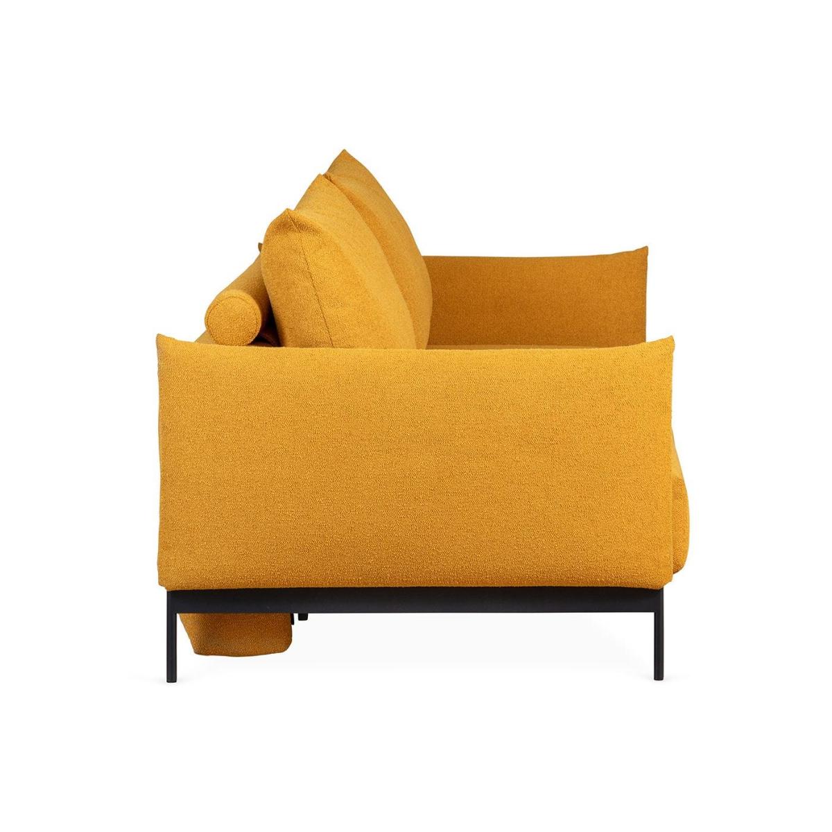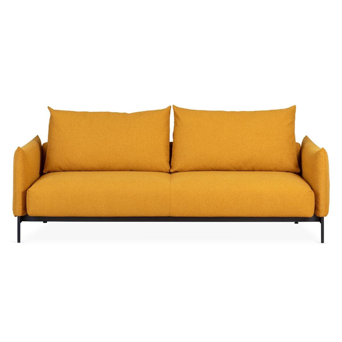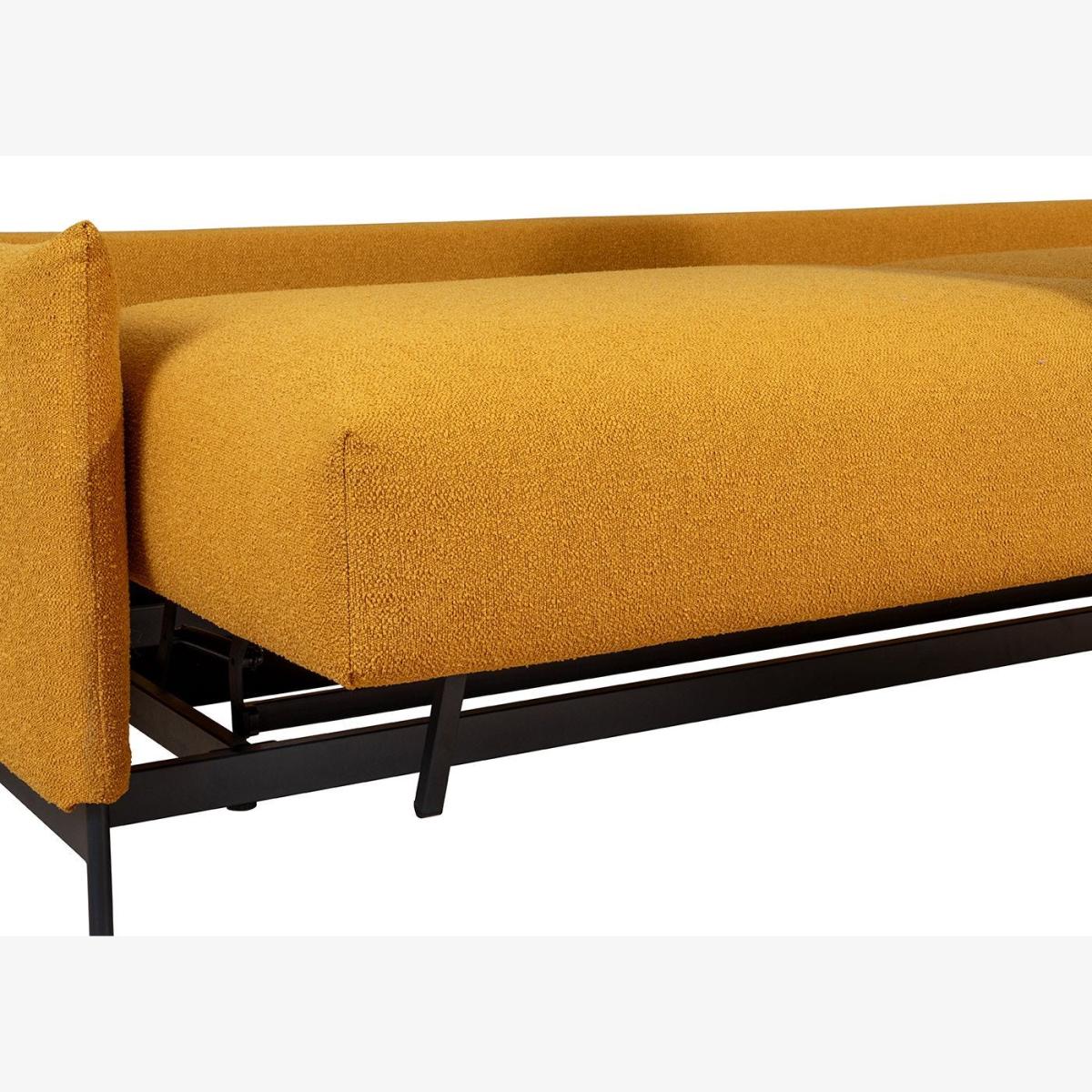 I’m a fan of the Otto sofa bed in ochre bouclé because its warm, tactile texture instantly lifts a room and the clever metal frame means you’ve got extra sleeping space without bulky storage. It sits equally well in a Scandi-inspired living area or a mid-century modern lounge - just layer with a sheepskin throw and muted linen cushions for a relaxed look. In a studio or spare room, it’s a real space-saver: keep surrounding décor pared back in greys or soft greens and introduce a slimline floor lamp to balance the low profile. A simple oak coffee table and a few sculptural ceramics will complete the scheme without competing with that striking ochre tone.
