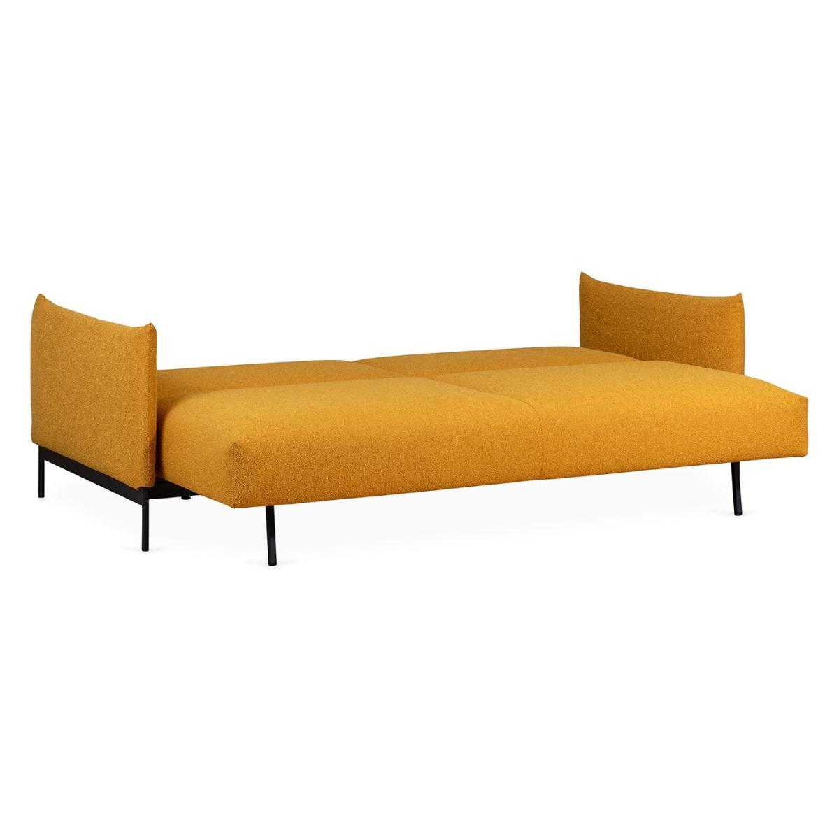 Combining unmatched comfort with effortless functionality, the Otto sofa bed is available exclusively at Heal's in a vibrant Ochre coloured Boucle fabric. Otto features soft cushioned arms and large back cushions, along with a pocket sprung seat and back with a sturdy metal frame for optimal comfort.