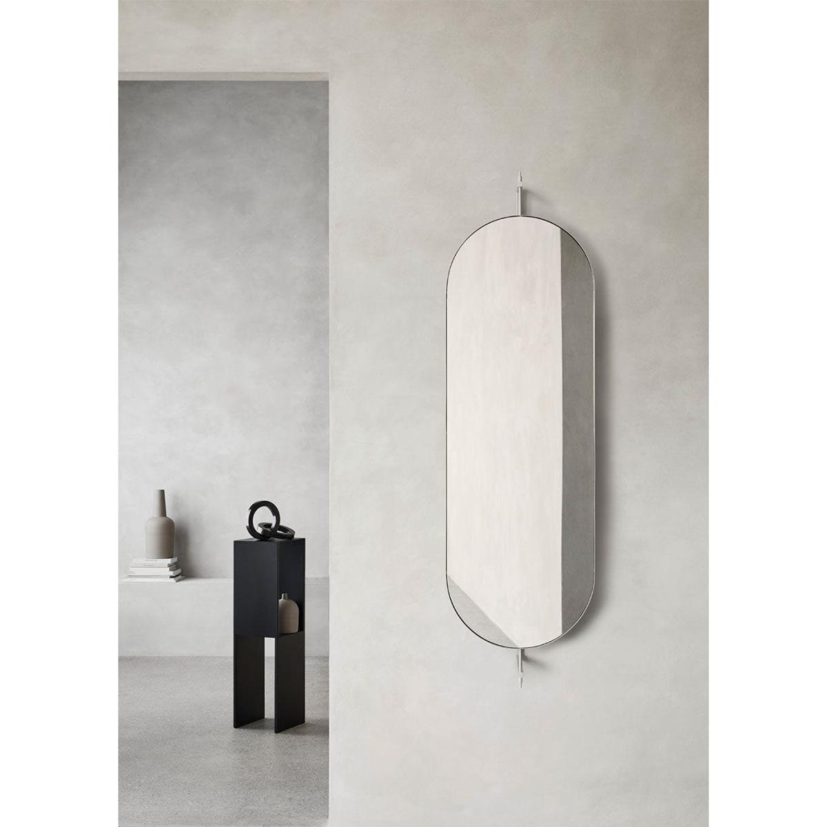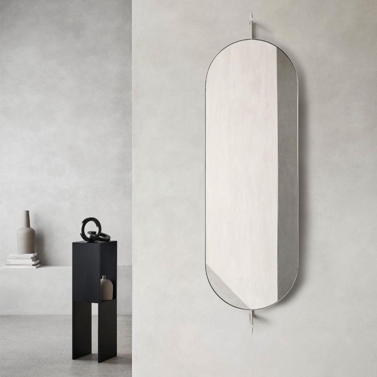 Less is more with the Oval Rotating Mirror from Kristina Dam. The Danish design studio calls their approach 'sculptural minimalism', merging Japanese and Scandinavian styles to create furniture with an elegant yet industrial feel. Framed in powder-coated steel, this wall-mounted mirror can be rotated on its axis to meet your desired angle. Two steel brackets support the frame, which you can also use as hooks to hang clothes and accessories. Available in black and cream finishes, this mirror creates a heightened sense of space and depth in any interior setting.