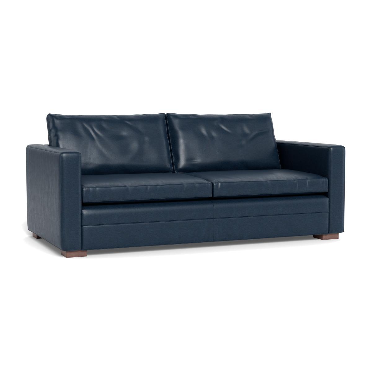 Heal's Palermo 3 Seater Sofa Leather Stonewash Navy Blue 279 Brass and Walnut Feet - Heal's UK Furniture