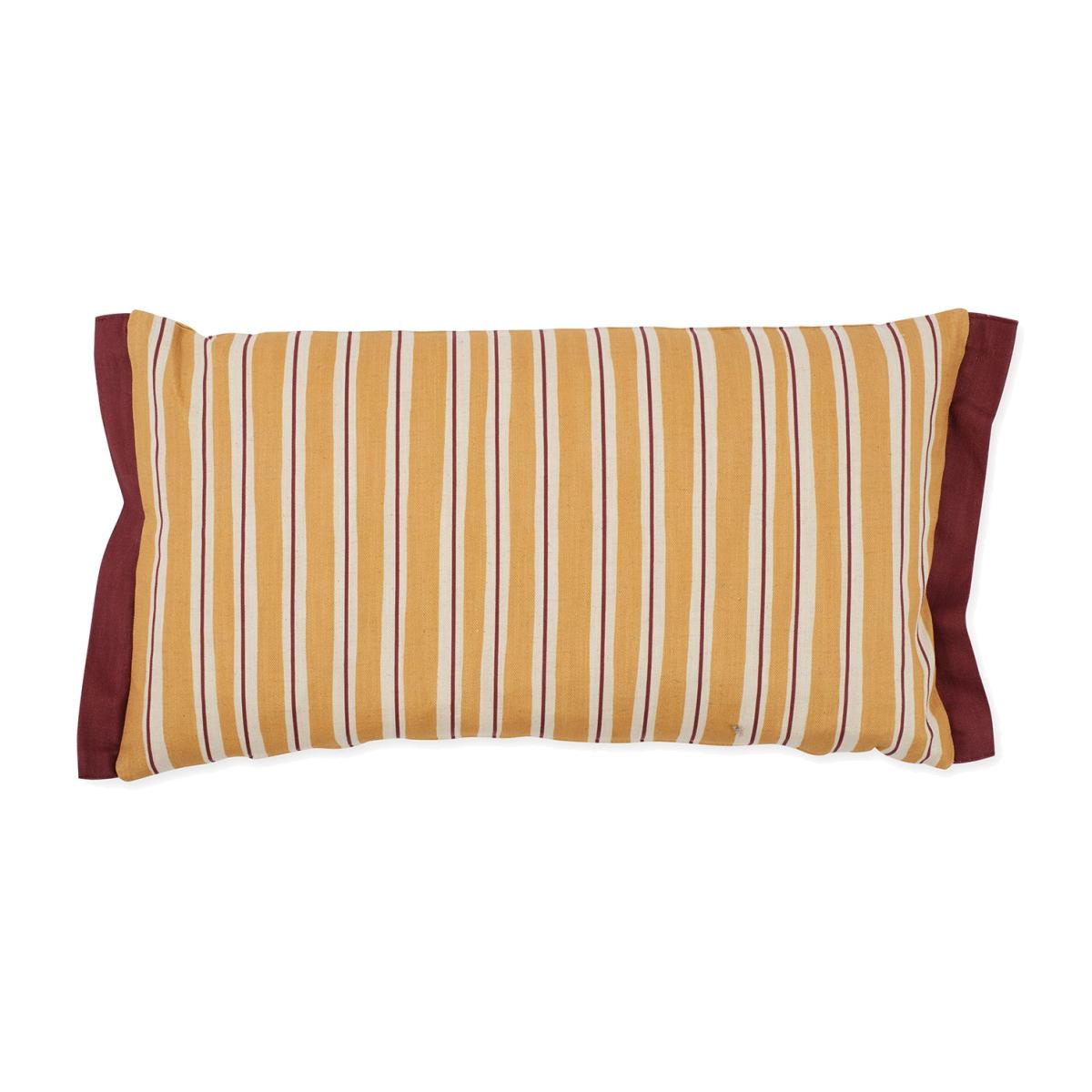 I love this cushion for its bold yet versatile design, making it an easy way to add colour and pattern to both casual and refined interiors. Its elongated shape is perfect for contemporary sofas, beds, or window seats, offering comfort with a touch of visual interest. The warm stripes and contrasting borders work particularly well in mid-century modern or boho schemes but can be styled to bring a lively element to pared-back, neutral spaces. For practical styling tips, try pairing it with other textured cushions in complementary tones or layering it with throws to create a cosy, inviting look. It’s a functional decoration that effortlessly elevates a space while remaining practical for everyday use.