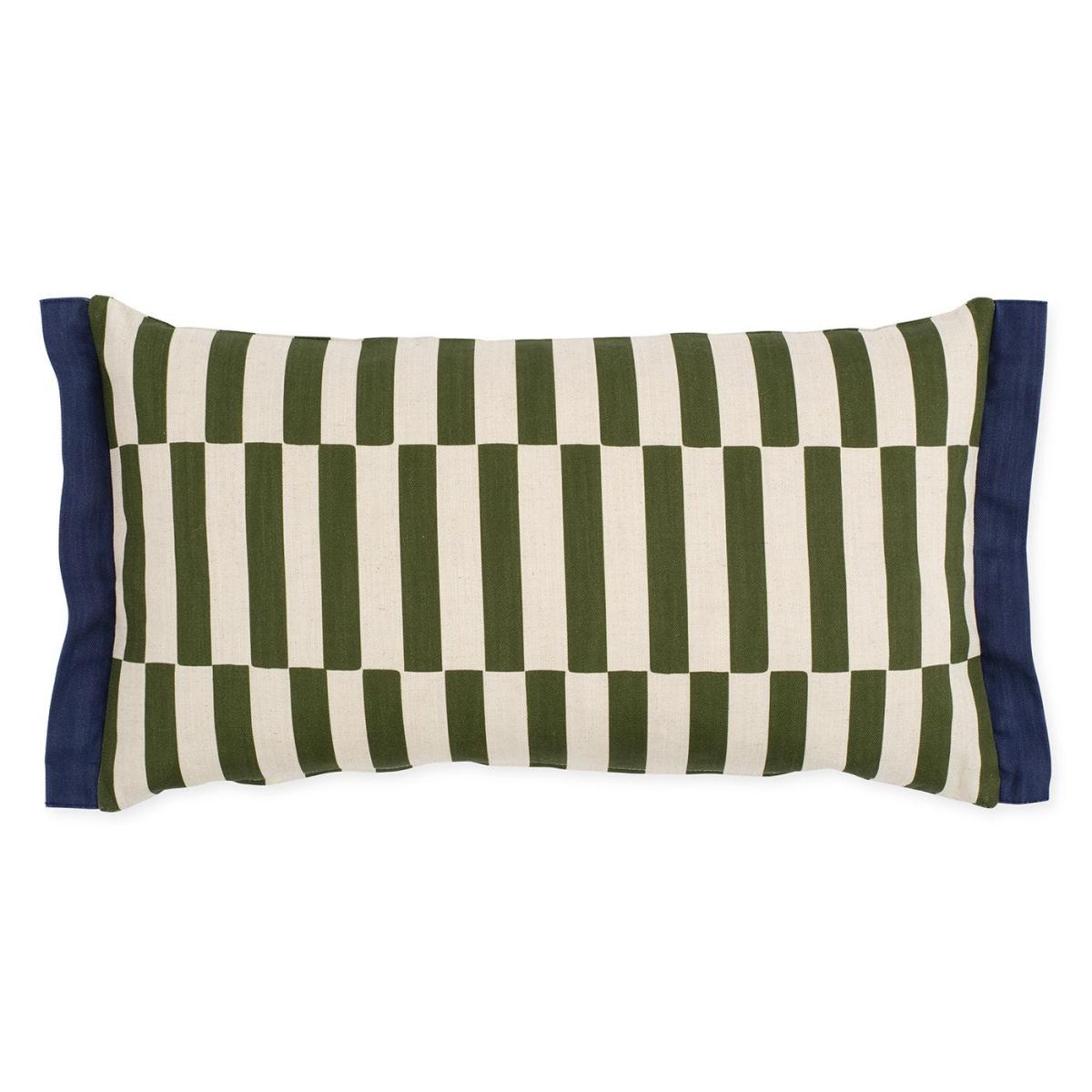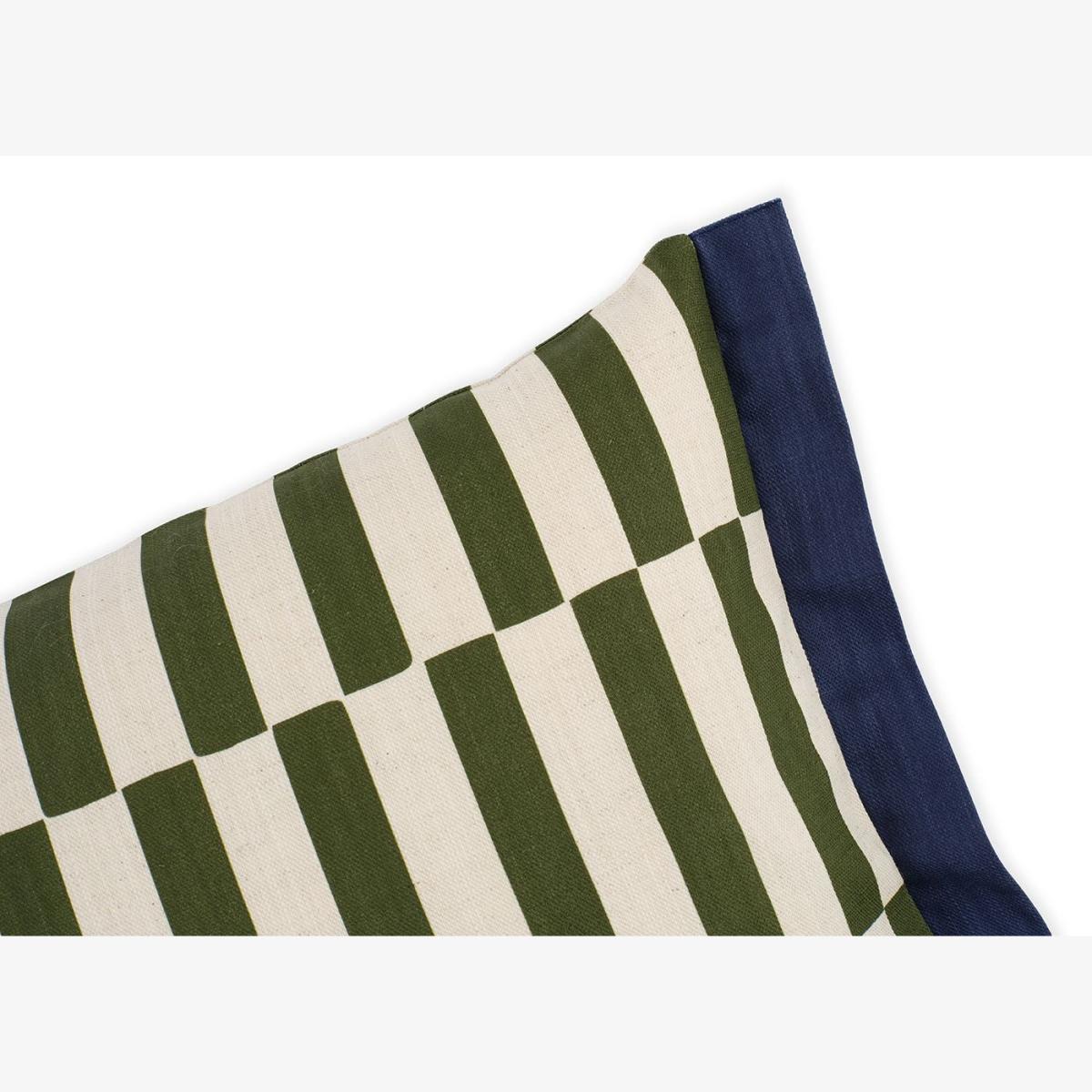 The Perspective Cushion brings a graphic edge to your décor with its bold olive check, framed by a contrasting navy edge. Digitally printed in Scotland on a linen mix, the design is featured on both sides for a cohesive look. Luxuriously soft and feather-filled, it’s finished with a neat zip fastening and removable cover made from organic cotton, recycled cotton, and linen.
