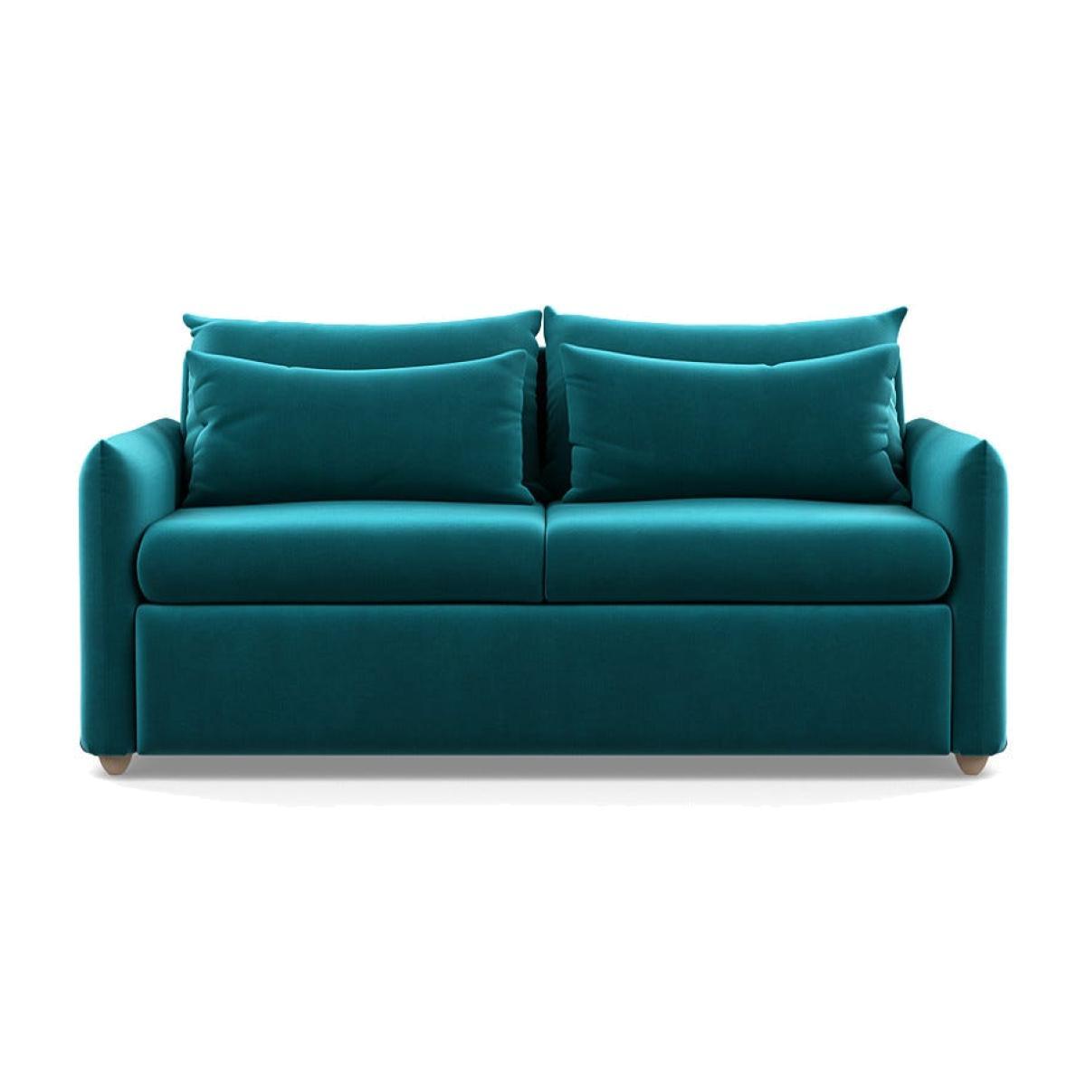 Heal's Pillow 3 Seater Sofa Smart Velvet Petrol Natural Feet - Heal's UK Furniture