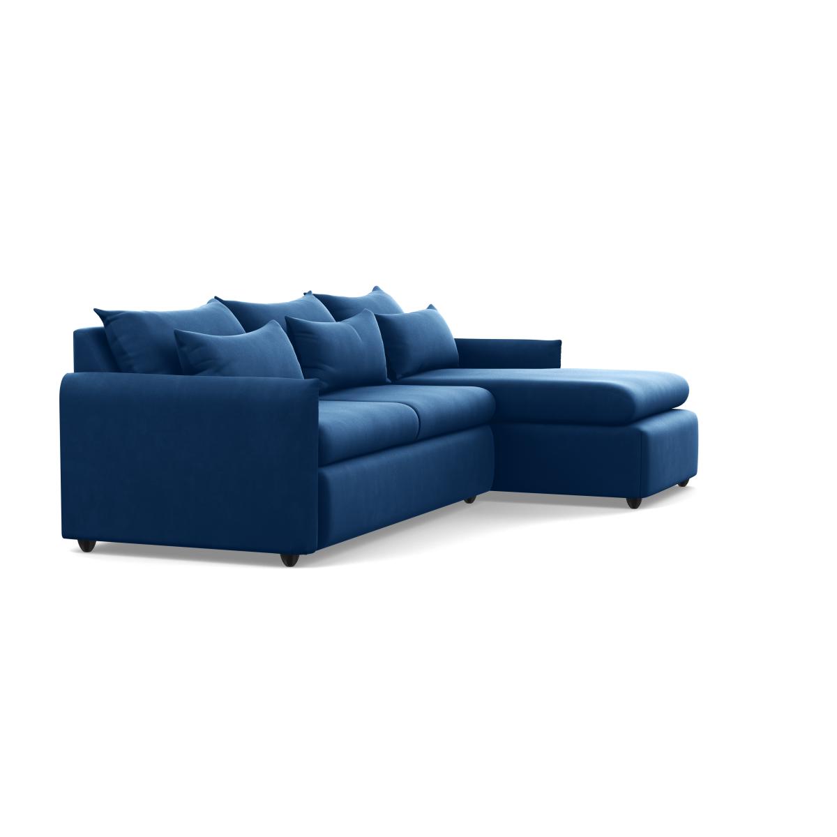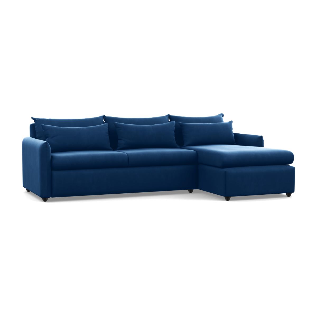 Heal's Pillow Large Right Hand Corner Chaise Velvet Petrol Natural Feet - Heal's UK Furniture