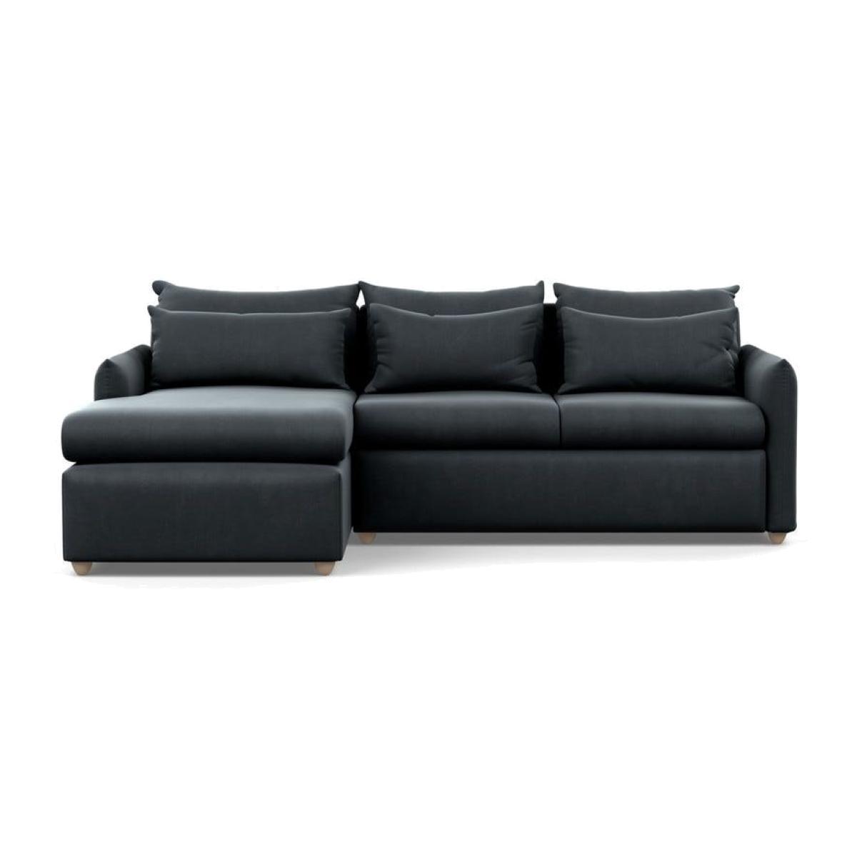 Heal's Pillow Medium Left Hand Corner Chaise Smart Velvet Grey Natural Feet - Heal's UK Furniture