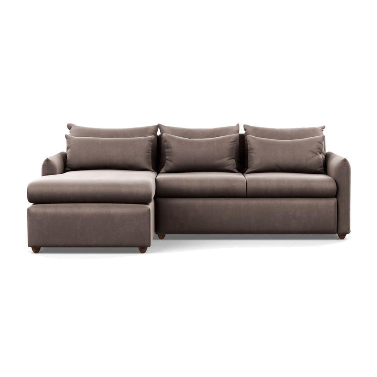 Heal's Pillow Medium Left Hand Corner Chaise Velvet Mink Chestnut Stain Feet - Heal's UK Furniture