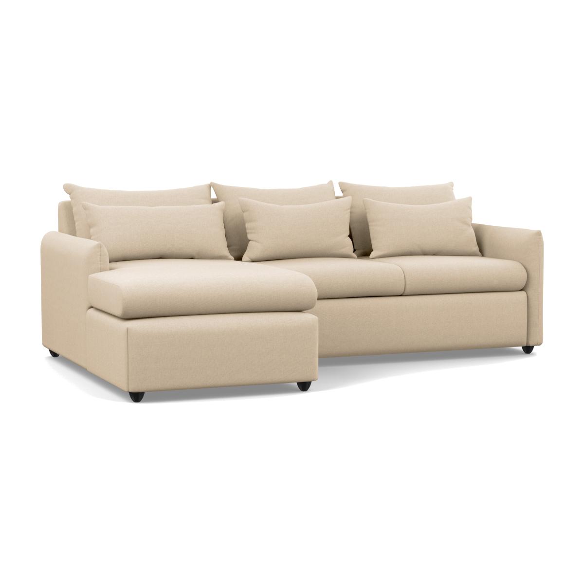 With its clean lines and simple shape, the Pillow sofa bed’s versatile design lends itself to any style of home. Its generous feather-filled back cushions encourage you to lie back and relax, while its fibre wrapped seat cushions act as a headboard when configured as a sofa bed. Pillow’s pocket sprung mattress can be unfurled effortlessly transforming the corner chaise into a comfortable double bed with additional chaise for visiting family and friends. The sofa bed option is also available as part of the 3 seater sofa. The Pillow range comes in nine different variants and all Heal's fabrics, making it the perfect versatile range for the contemporary living space.