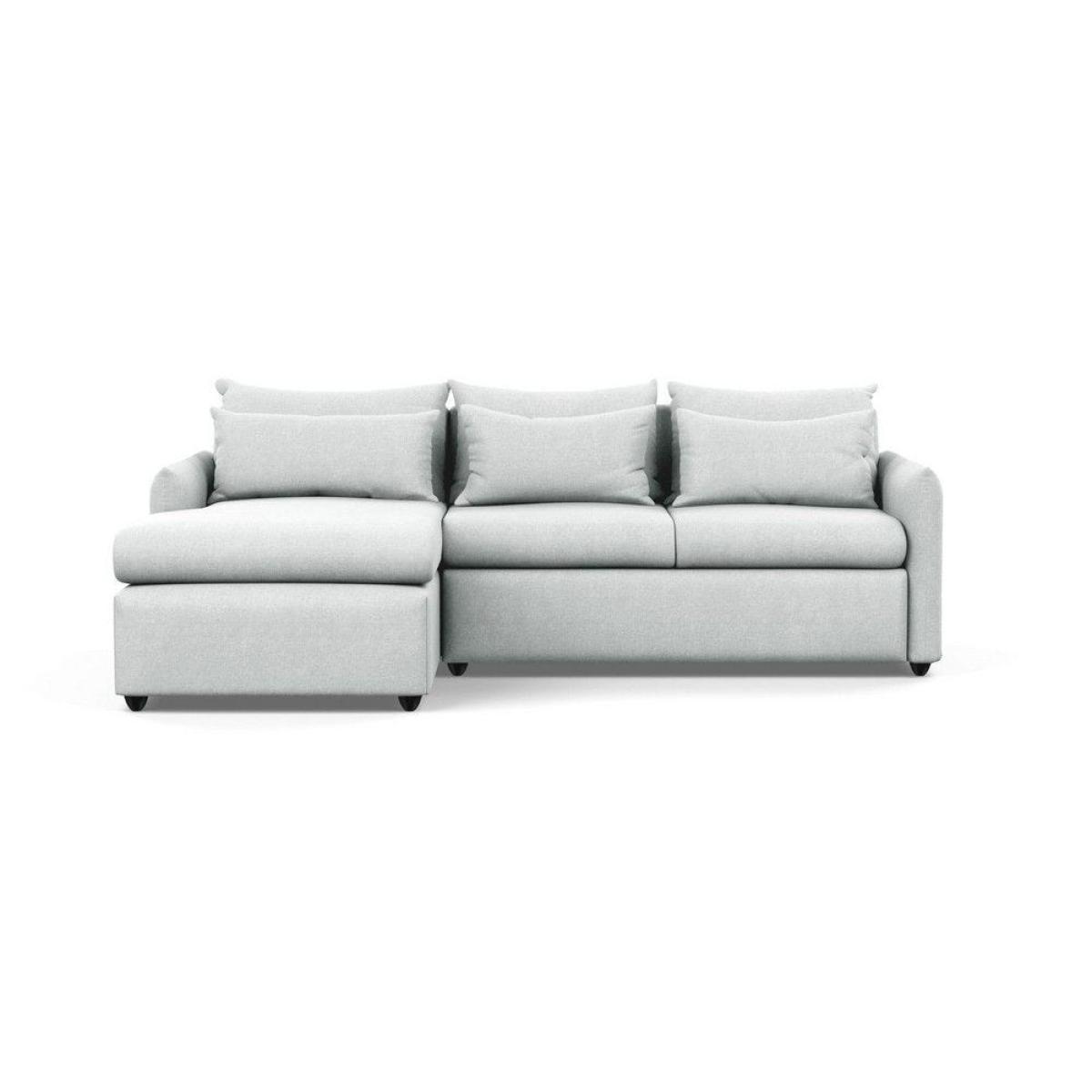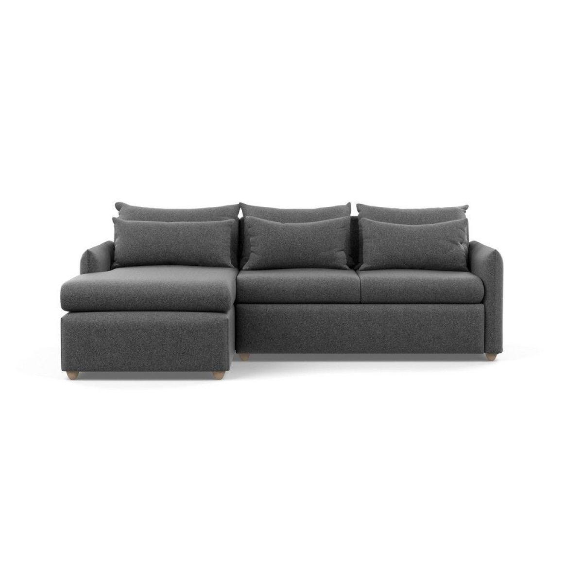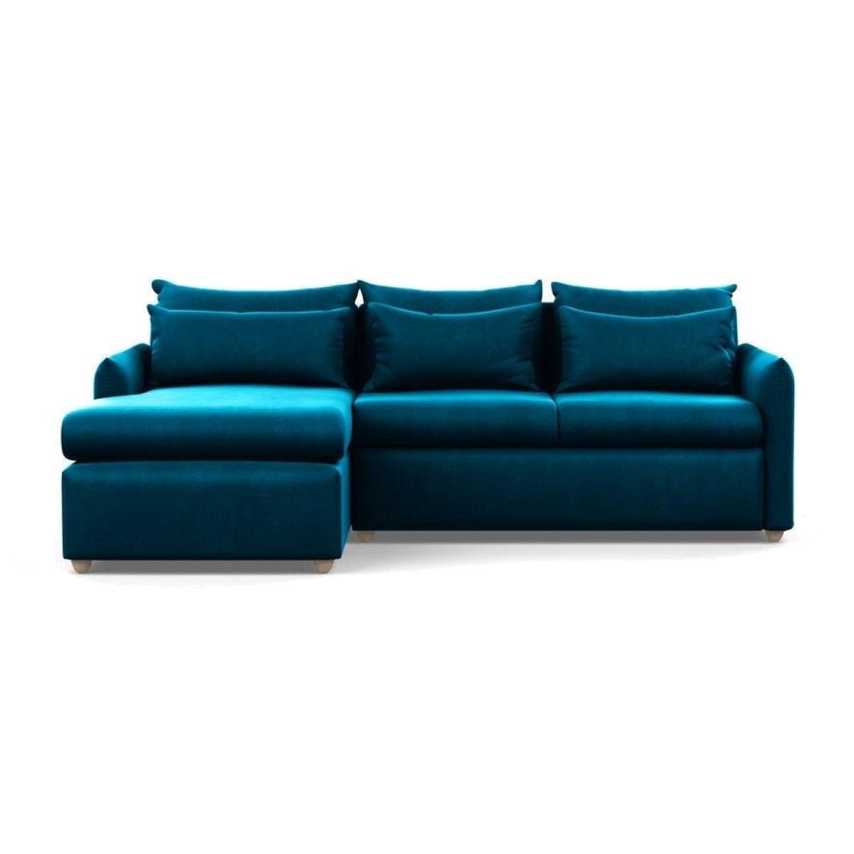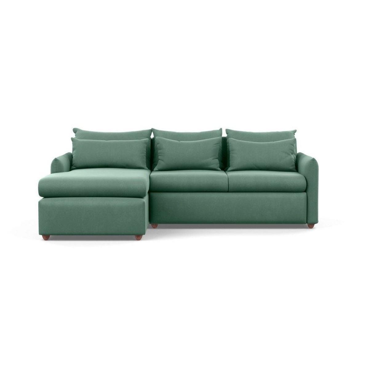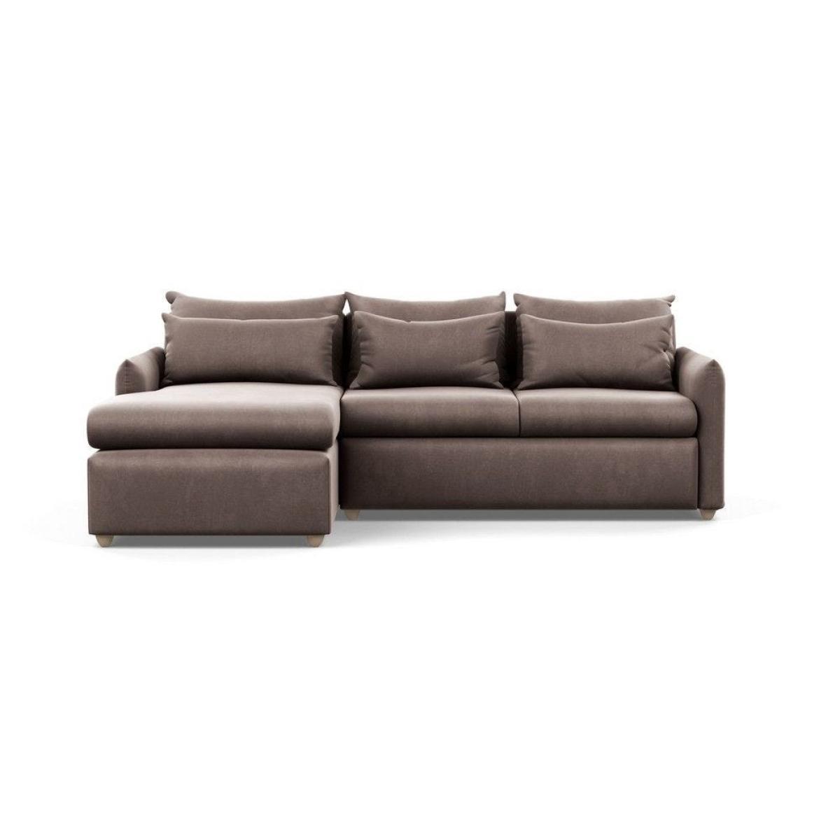 Heal's Pillow Medium LHF Corner Chaise Sofa Brushed Cotton Mist Black Feet - Heal's UK Furniture