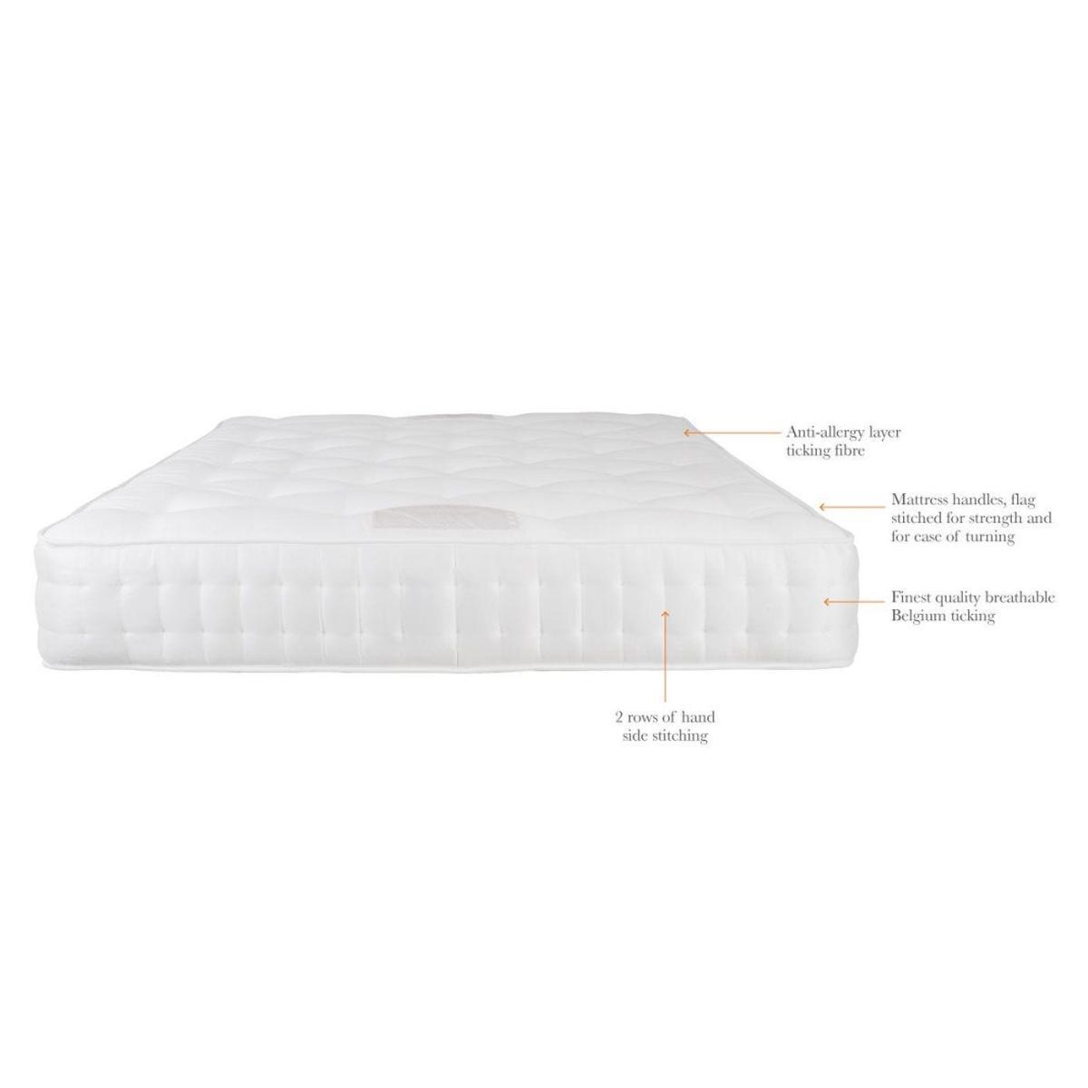 Handmade in Somerset, the Pocket 1400 mattress features the most luxuriously soft natural fillings including lambswool, animal hair, soft white fibre and cotton - this, combined with 1400 pocket springs creates a supportive but gentle feel. Individually encased in hard wearing fabric pockets, hundreds of springs have been hand-nested into the frame, moving independently from one another to mould to your natural contours. Each Pocket 1400 mattress has the added benefit of a hypo-allergenic layer which works to protect your mattress from dust mites, creating a healthy sleeping environment. Beautifully tailored in a luxurious fabric, all of the sumptuous fillings are held together with traditional hand tufting and side stitching which protects against wear and offers maximum durability. From the moment John Harris Heal first introduced London to feather filled mattresses back in 1810, we've continued to produce exquisitely designed pieces for the bedroom. Pairing individually pocketed springs with the finest natural fillings, the Pocket 1400 is a medium tension mattress that offers a traditional feel as well as luxurious comfort and support.