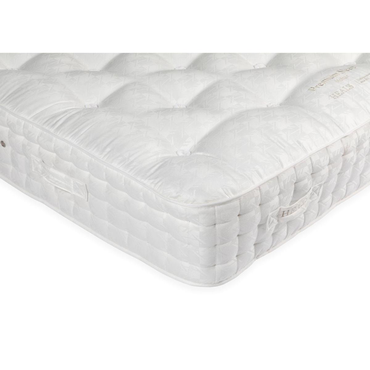 Handmade in the UK exclusively for Heal's, at the centre of the Premium Sleep Cashmere Mattress sits 1400 pocket springs, each of which move independently from one another to respond to the natural contours of the body and movements during the night.<p> The springs are then wrapped in hand teased cashmere and mohair, luxurious materials known for being light-weight, well insulated and providing exquisite comfort.<p> On top of these rest breathable layers of lambswool and cotton, which help wick away moisture from the body during the night as well as regulate body temperature for a fresh night's sleep all year round.<p> Available in a choice of soft, medium or firm tension, the Natural Sleep Cashmere mattress is filled, tufted and stitched entirely by hand with Heal's ticking providing the finishing touch. Hand filled, tufted and stitched in Britain, the Natural Sleep Cashmere Mattress features 1400 individual pocket springs encased within hand-teased cashmere and mohair. Available in a choice of three tensions, this mattress is topped with layers of the finest natural fleeces with each of the fillings chosen for its luxurious comfort, insulation and breathability.