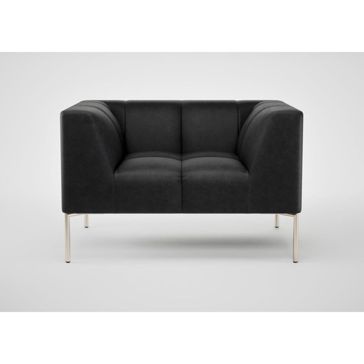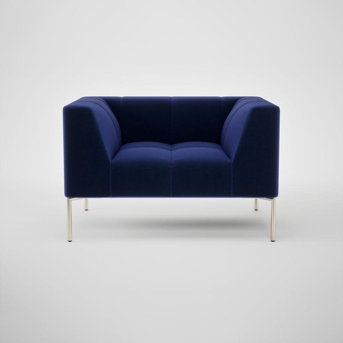 Heal's Quadro Armchair Nobilis Velvet Neptune Stainless Steel