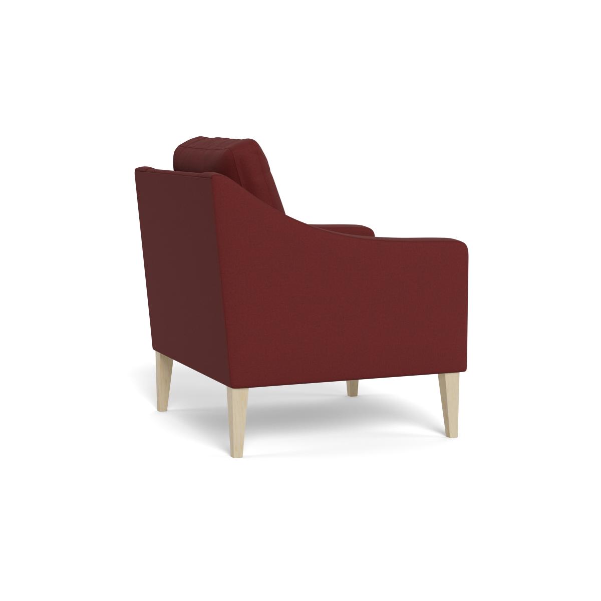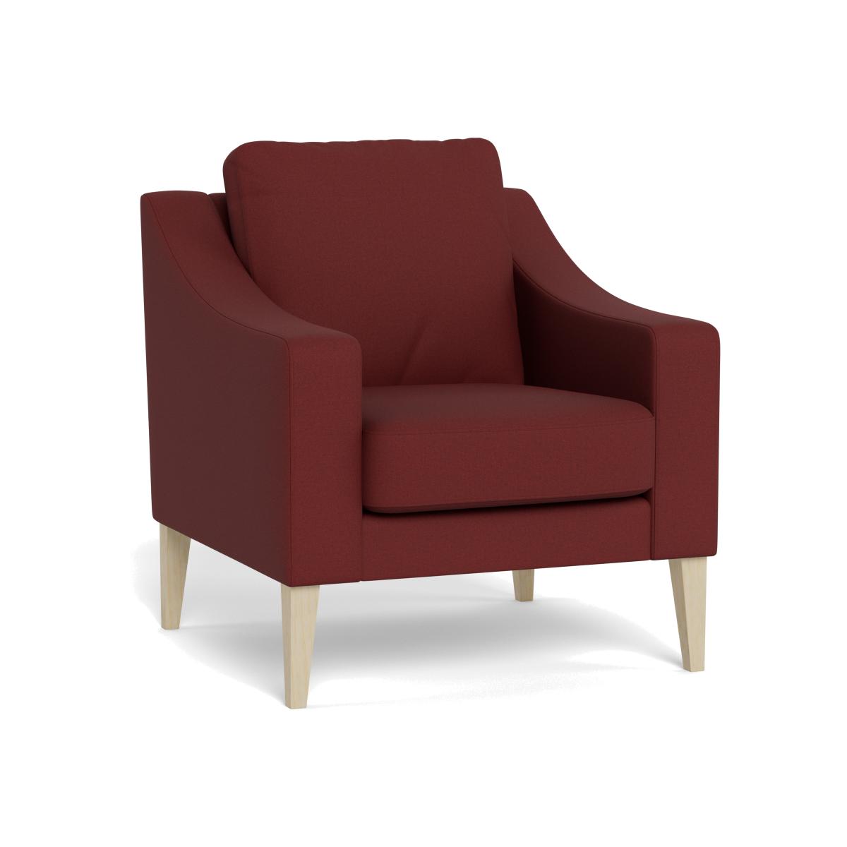 I love this armchair’s rich Etruscan red linen-cotton blend, which brings warmth and depth to both contemporary and traditional interiors. Its clean, yet slightly sculptural shape makes it versatile enough to work in living rooms, home offices, or cosy reading nooks. The walnut-stained feet add a touch of classic sophistication, grounding the piece beautifully. For styling, consider pairing it with neutral cushions or contrasting throw blankets to highlight its colour. It works particularly well in spaces with natural textures or muted palettes, but can also serve as a statement piece in more eclectic setups. Practical tips include placing it near a good reading lamp or accentuating its colours with complementary decor in deep greens, burnt oranges, or soft metals.