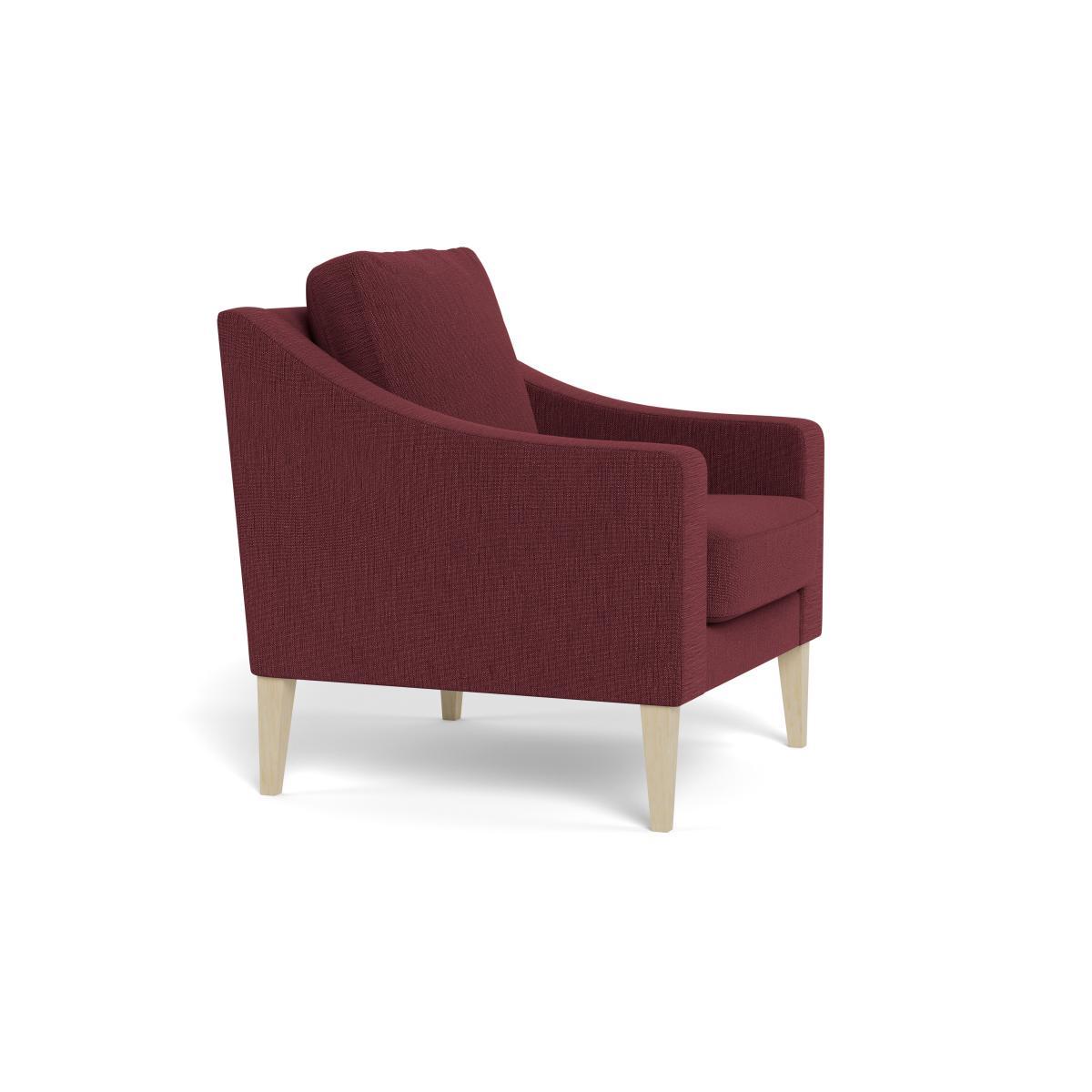 I love this armchair because of its versatile mix of contemporary comfort and classic style. The maroon and black feet give it a sophisticated edge, making it a great statement piece, especially in modern or industrial interiors. It works well in living rooms or bedrooms that lean towards muted tones or bold accents, providing a cosy yet stylish seating option. Practical styling tips include pairing it with textured throw cushions or layered rugs to elevate its appearance, while keeping the colour palette balanced with neutral tones to let the chair stand out. It's a reliable choice for adding both comfort and character to a variety of interior schemes.