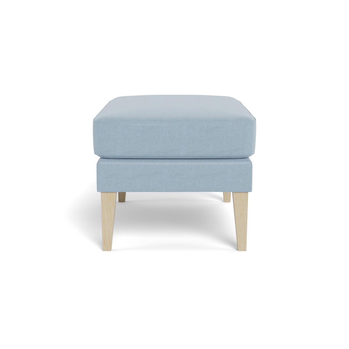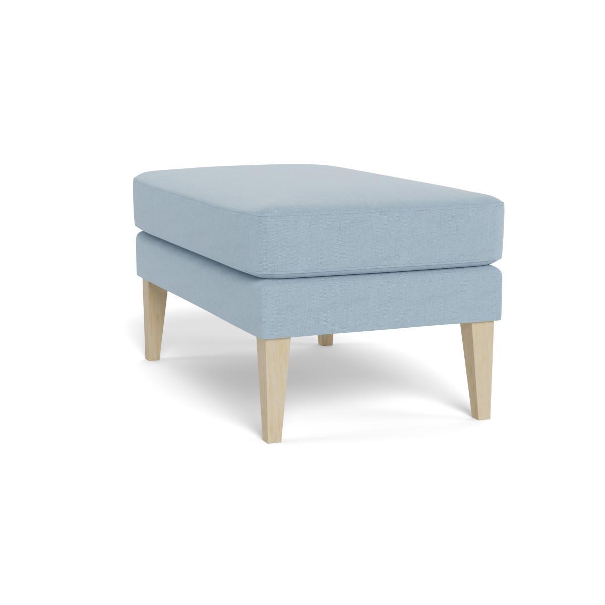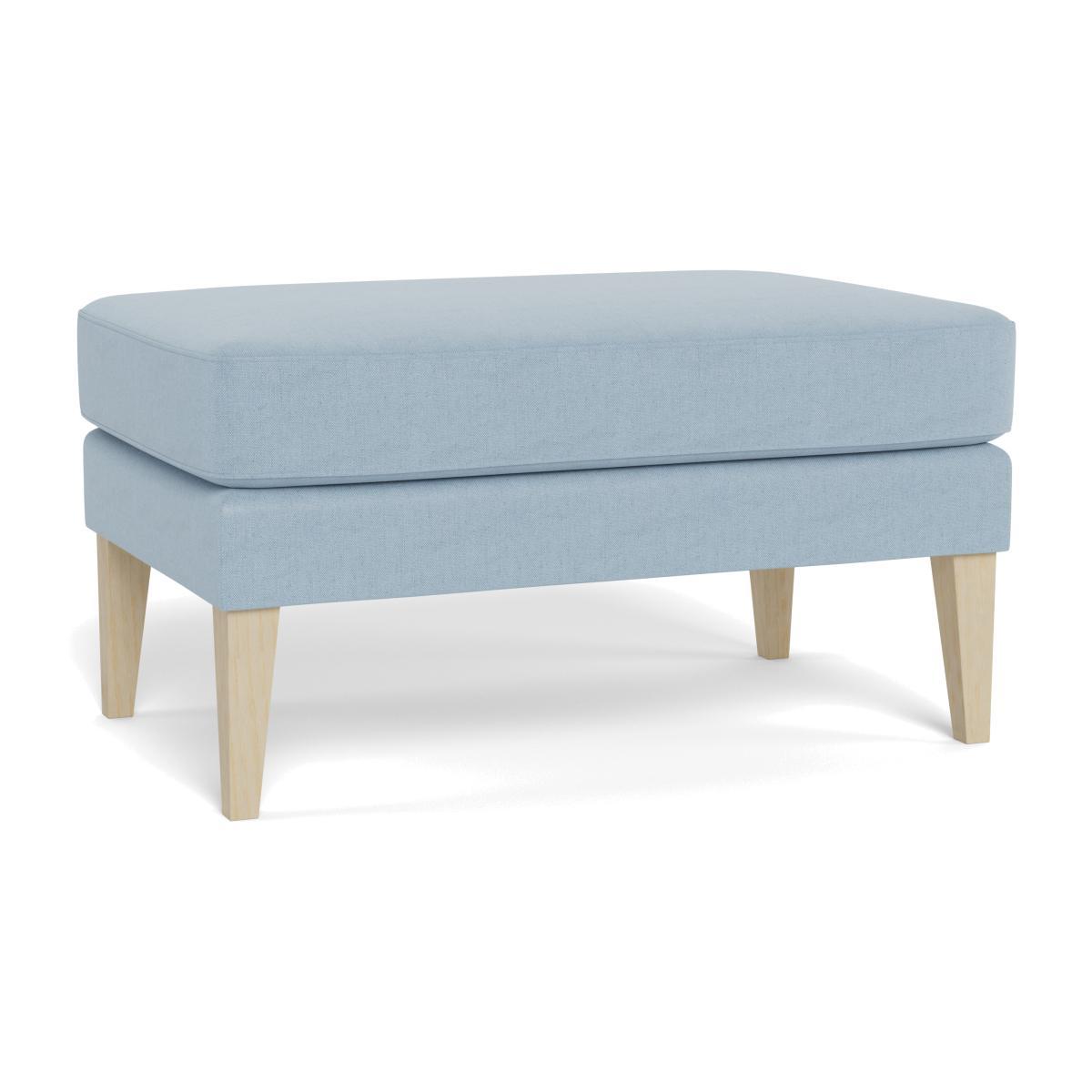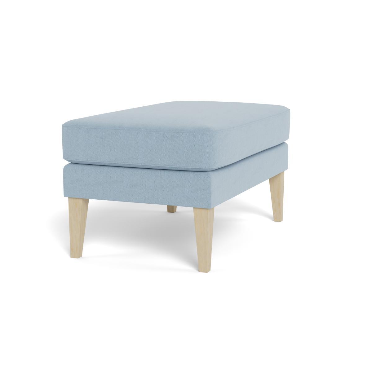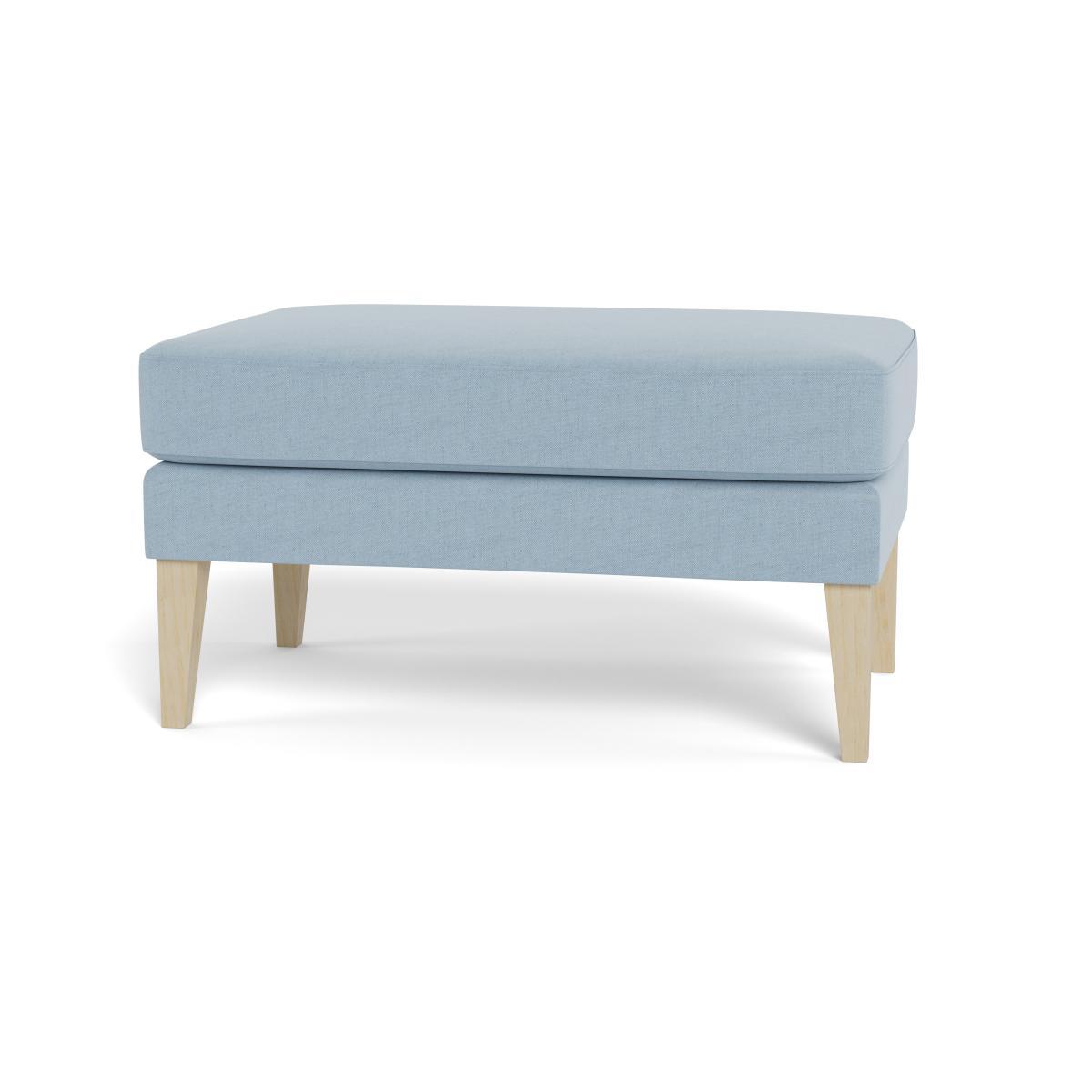 I love this ottoman for its versatile and relaxed aesthetic-perfect in both contemporary and Scandi-inspired interiors. The Capri LinenCotton fabric in sea shanty offers a soft, understated hue that pairs effortlessly with neutral palettes or colourful schemes. Its compact size makes it an ideal footstool or extra seat and works well alongside plush sofas or more minimalist furniture. For styling, consider positioning it as a central piece in a living room with a layered textile approach or as a coffee table alternative topped with a tray for practical, casual use. Its natural wood legs add a subtle warmth, making it suitable for both modern and traditional settings.
