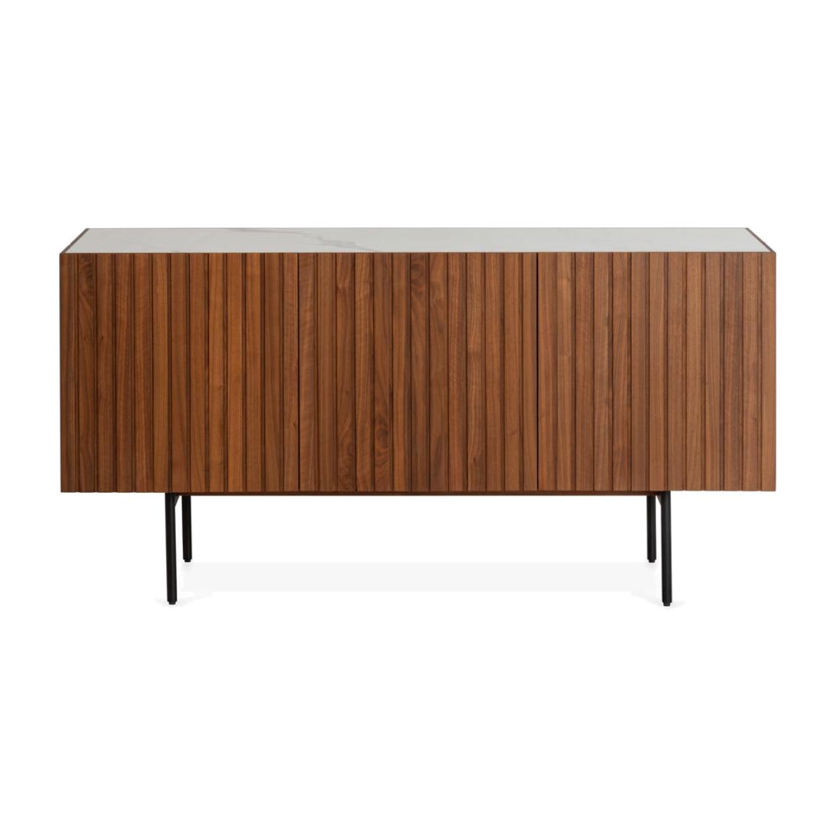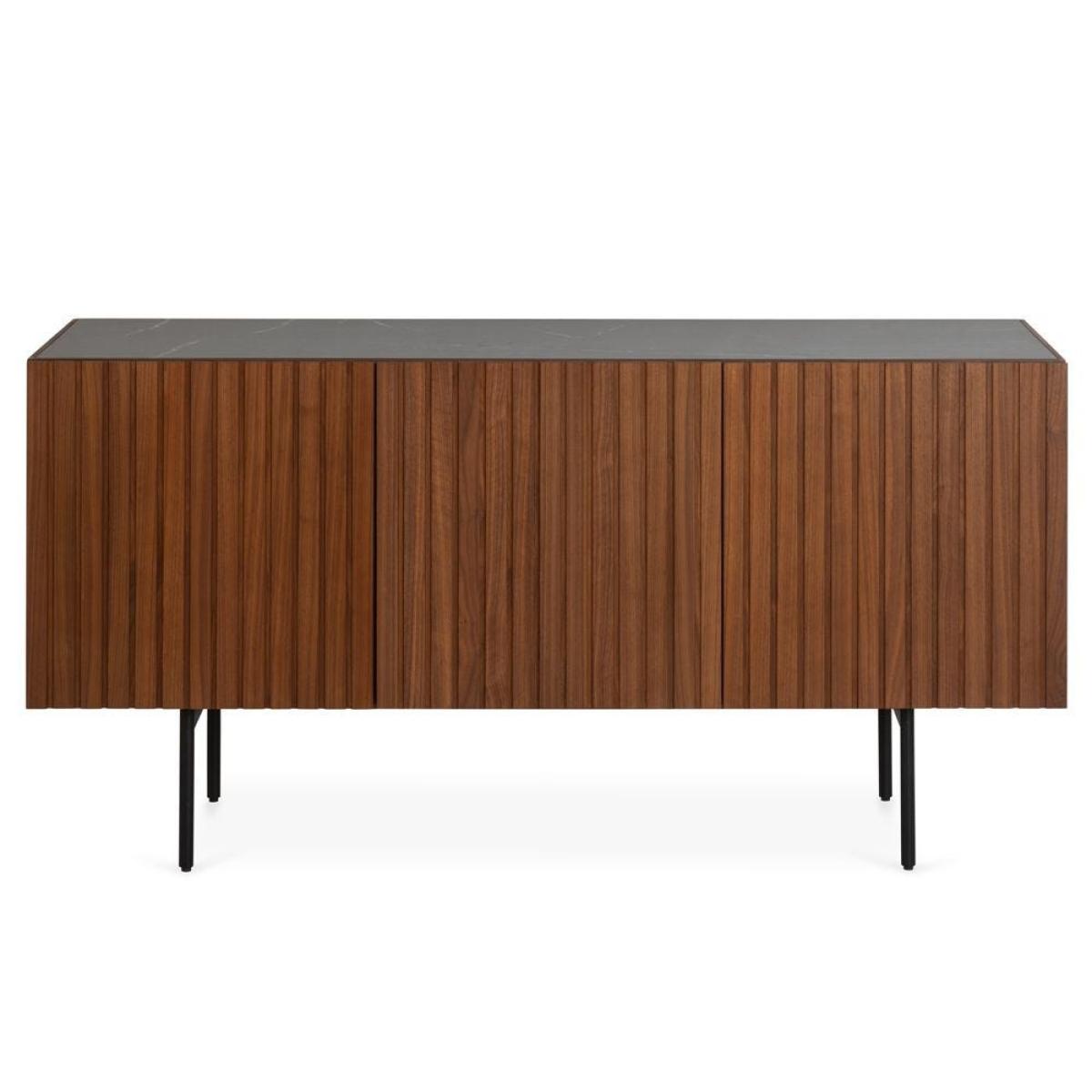 Comprising a sideboard, dining table, side table, dining chair, AV unit and coffee table, the Riga collection demonstrates a mastery of premium materials, combining solid and veneered walnut with elegant ceramic. The entire range is characterised by its signature slats, from the front of the sideboard to the legs on the tables, complete with grey or white ceramic tops.