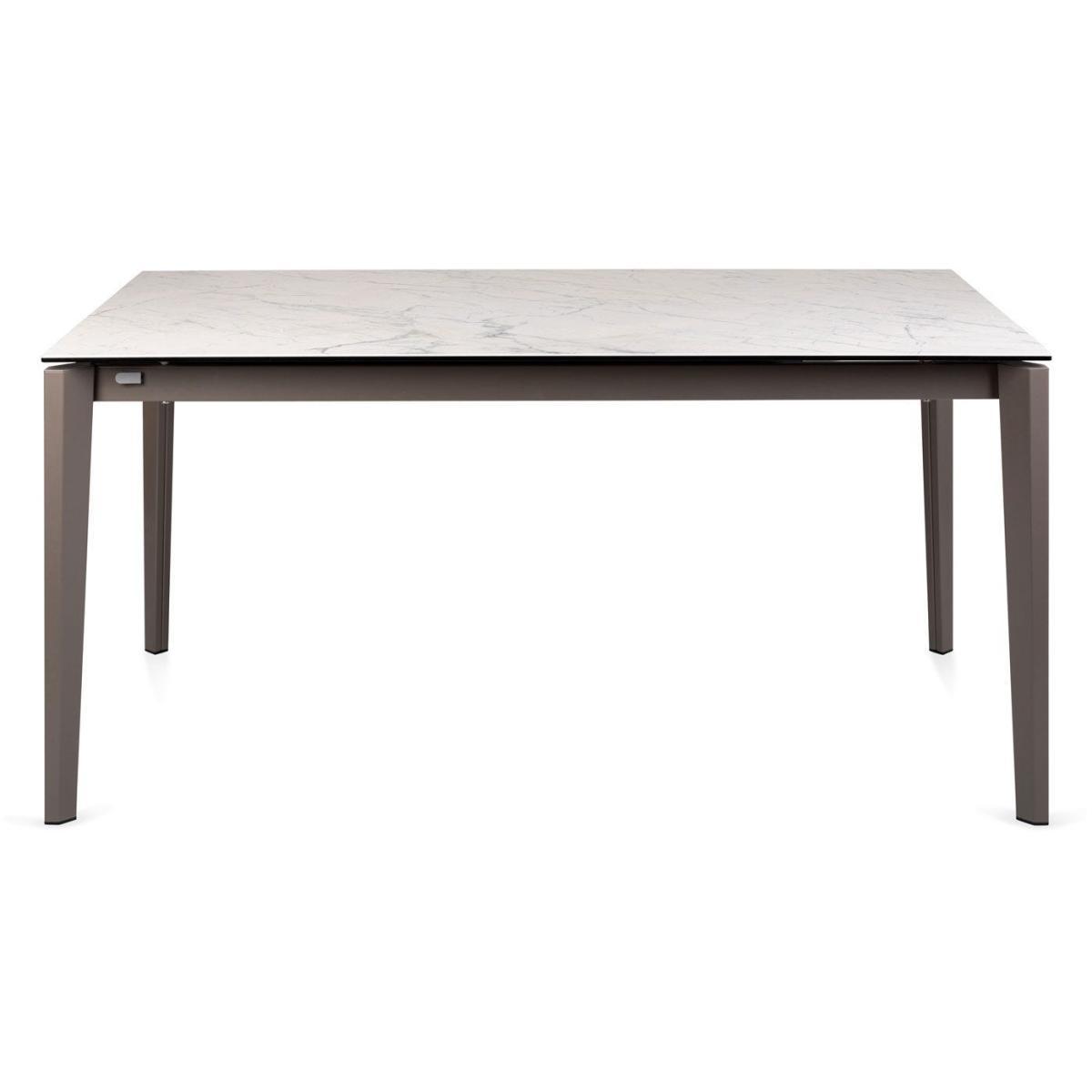 The Rocca Ceramic Extending Table by Heal's is made from high-quality Italian ceramic. Handmade in Italy, this item blends fine Italian craft and materials to create a durable, stylish and artful piece of furniture. Porcelain stoneware is incredibly hard-wearing, used to make the table scratch, liquid and thermal resistant making it the perfect choice for a busy yet stylish home. The simple and easy to use butterfly extension mechanism allows 6 to 10 people to be seated comfortably. The extension leaves which are hidden within the table add an extra 1m seating with one simple extending motion. The positioning of the leg also ensures maximum seating potential whether the table is open or closed.