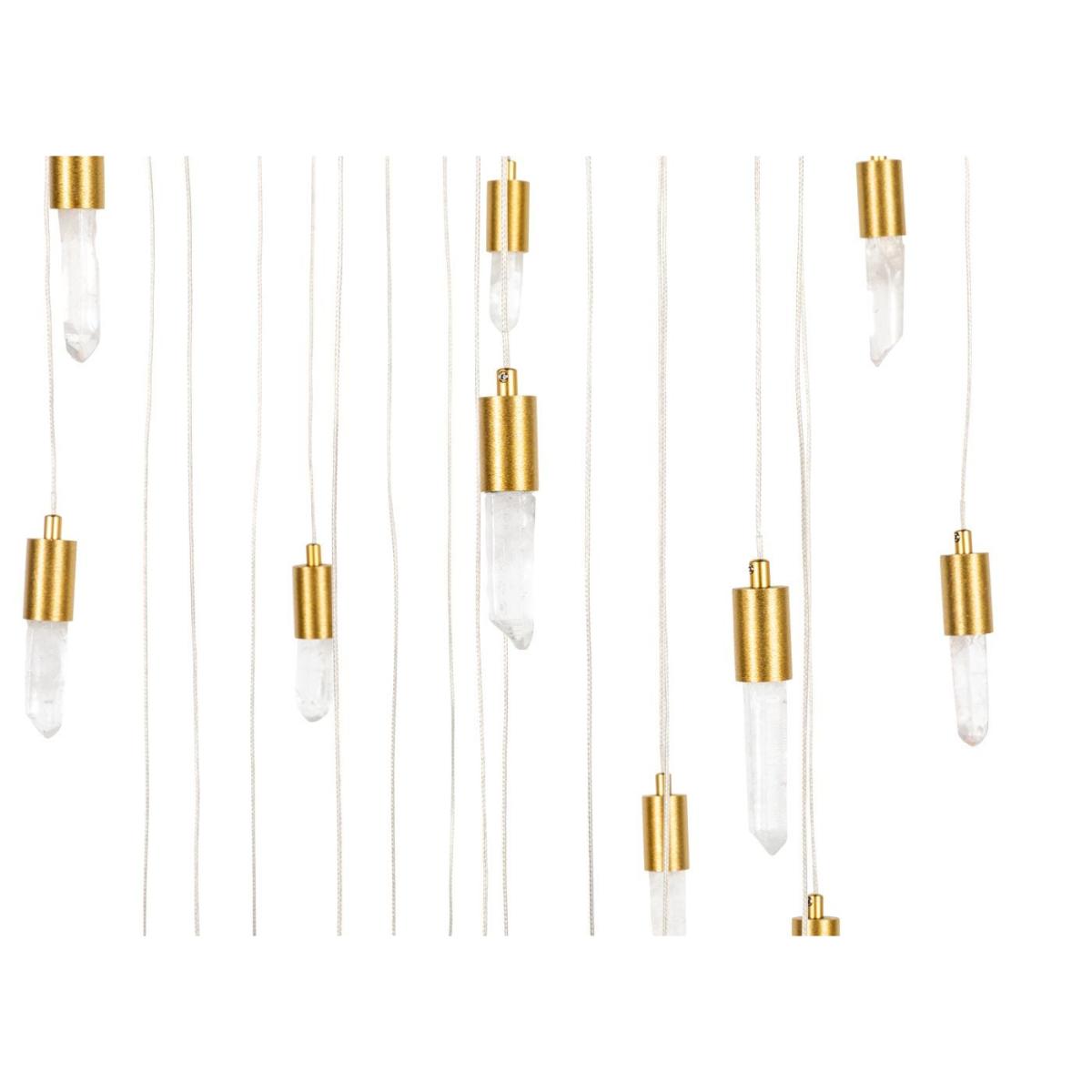 A conversation-starter in a stairway or atrium, the Rock crystal LED chandelier is certain to bring the drama to any space, its striking design combining natural quartz rock crystals with LED pin-prick lights and a sleek brushed gold finish. The effect is spectacular light that shines through each crystal for sparkling illumination. Better still, the light has dimmer capabilities, meaning the brightness can be dialled up or down according to the ambience required.