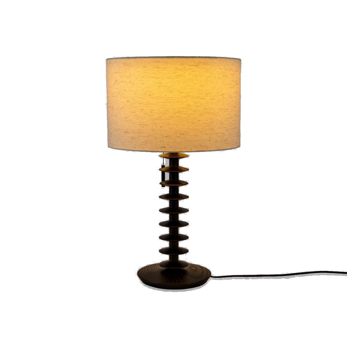 I love this table lamp for its sleek, modern look with a hint of vintage appeal, making it versatile across various interiors. Its black ash base adds a touch of natural texture, perfect for both contemporary and minimalist spaces, while the warm light from the fabric shade creates a cosy atmosphere. For styling, try pairing it with neutral-toned furniture or in a bedside setting to add contrast without overpowering the room. Practical tips include placing it on side tables or consoles to introduce a sculptural element that also offers functional lighting, especially in living rooms or bedrooms. This lamp works well in both classic and modern interiors, adding character without clutter.