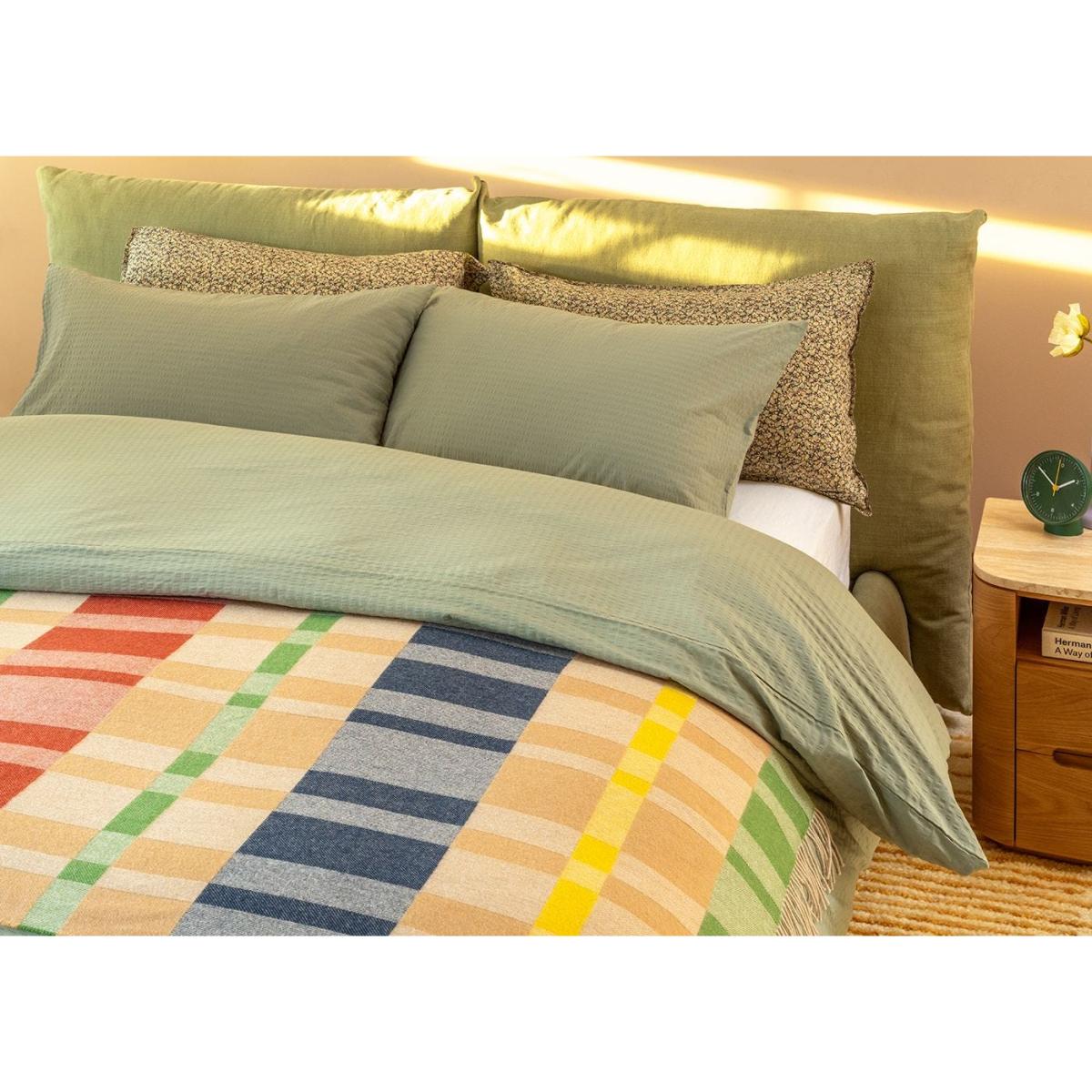 Made from pure cotton in Portugal, our seersucker bed linen set is beautifully textured for a soft and cosy feel, while its sage-green colour is both timeless and on-trend. Layer with tonal colours for a cohesive scheme or team with vibrant shades for an eclectic look.
