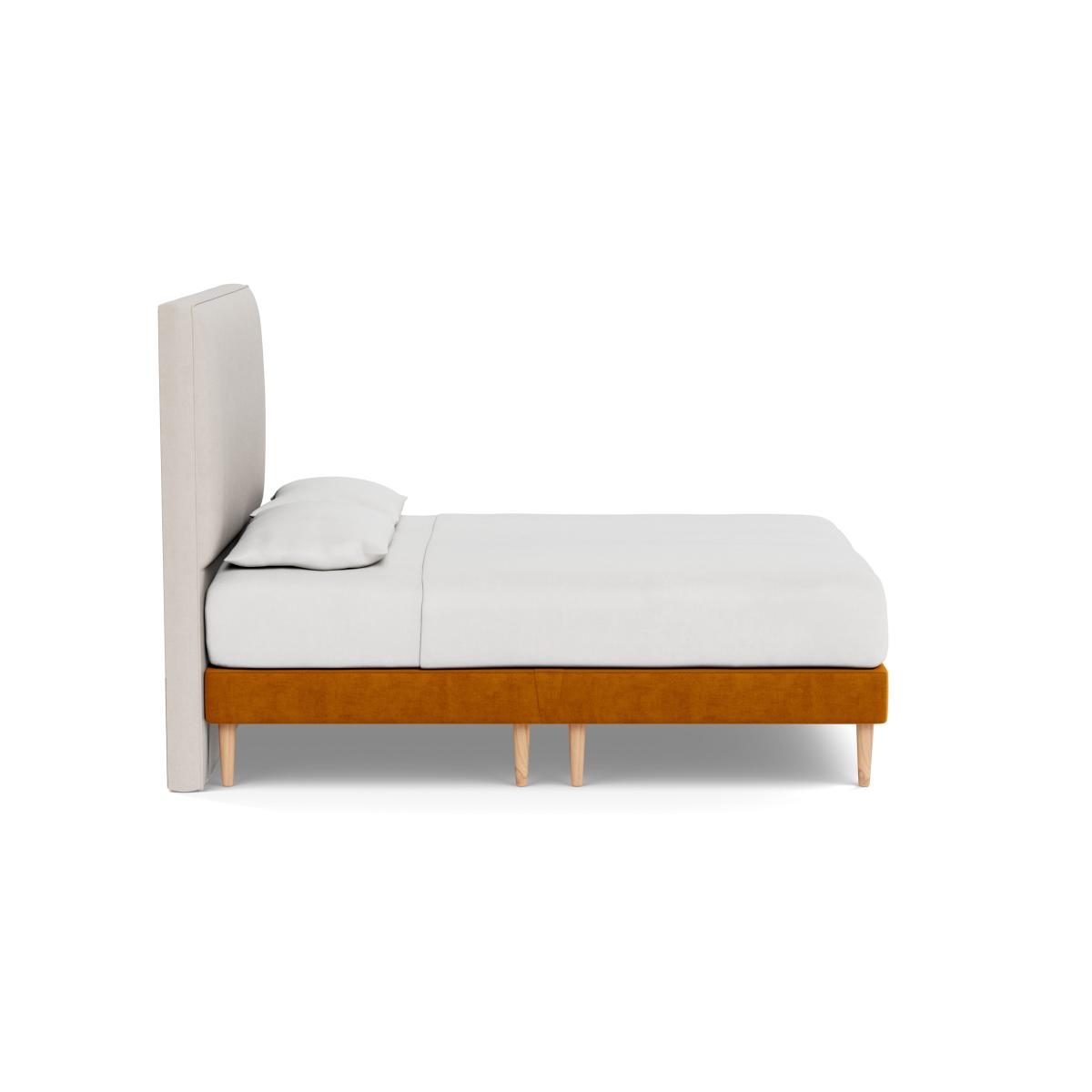 A slender frame and solid wood feet give the Heal’s Shallow Divan the appearance of a bedstead while providing all the support of a divan. Handmade in Lancashire by a family run bed maker, this divan has been developed to provide superior comfort while also prolonging the life of your mattress. The shallow sprung base is crafted from FSC certified timber and filled with natural fibres for a supportive and breathable night’s sleep. Designed to pair with a range of upholstered headboards, the Heal’s Shallow Divan comes fully upholstered in your choice of eight contemporary fabrics with four solid wood foot options. You can also sleep soundly in the knowledge that all of our divans and headboards come with a 10 year guarantee.