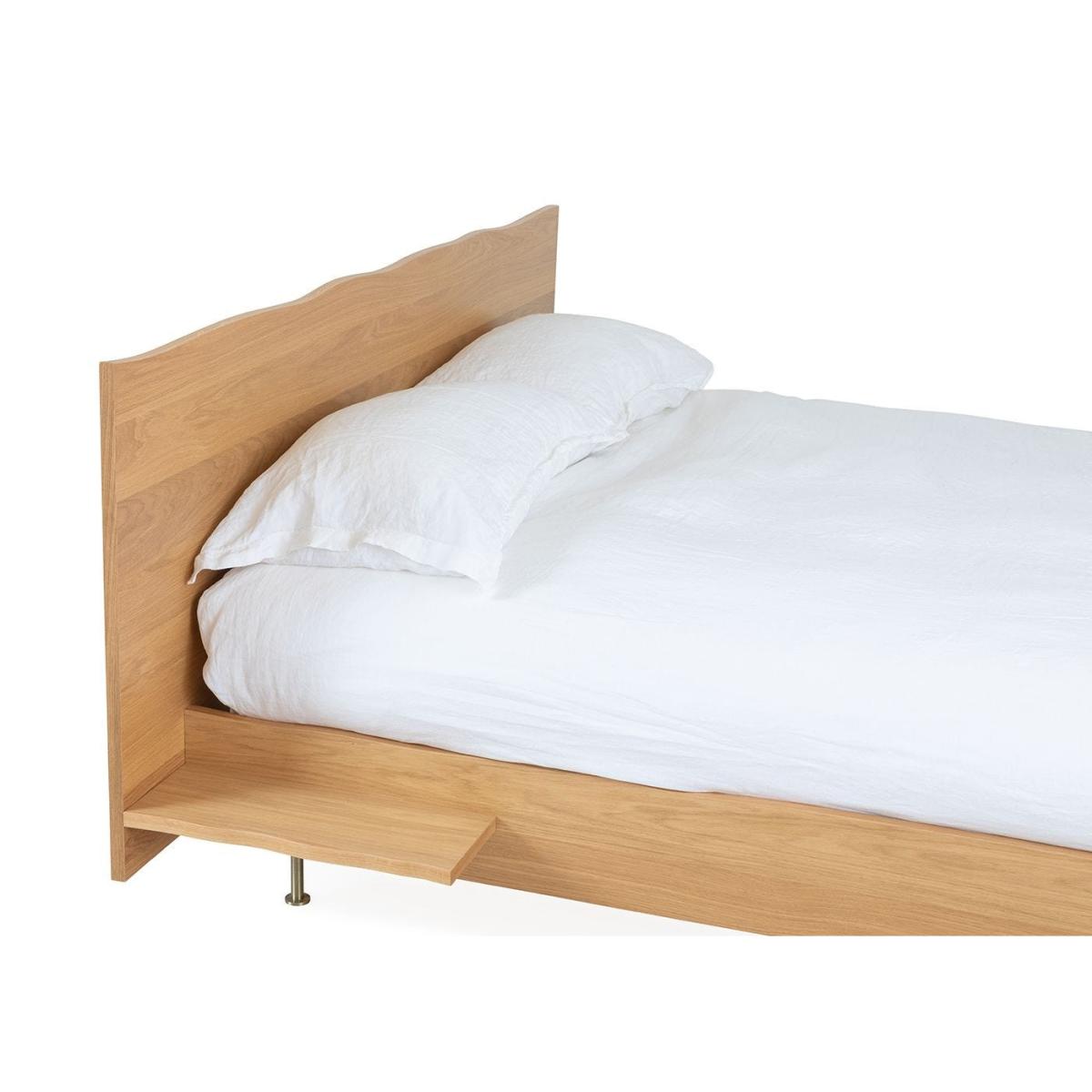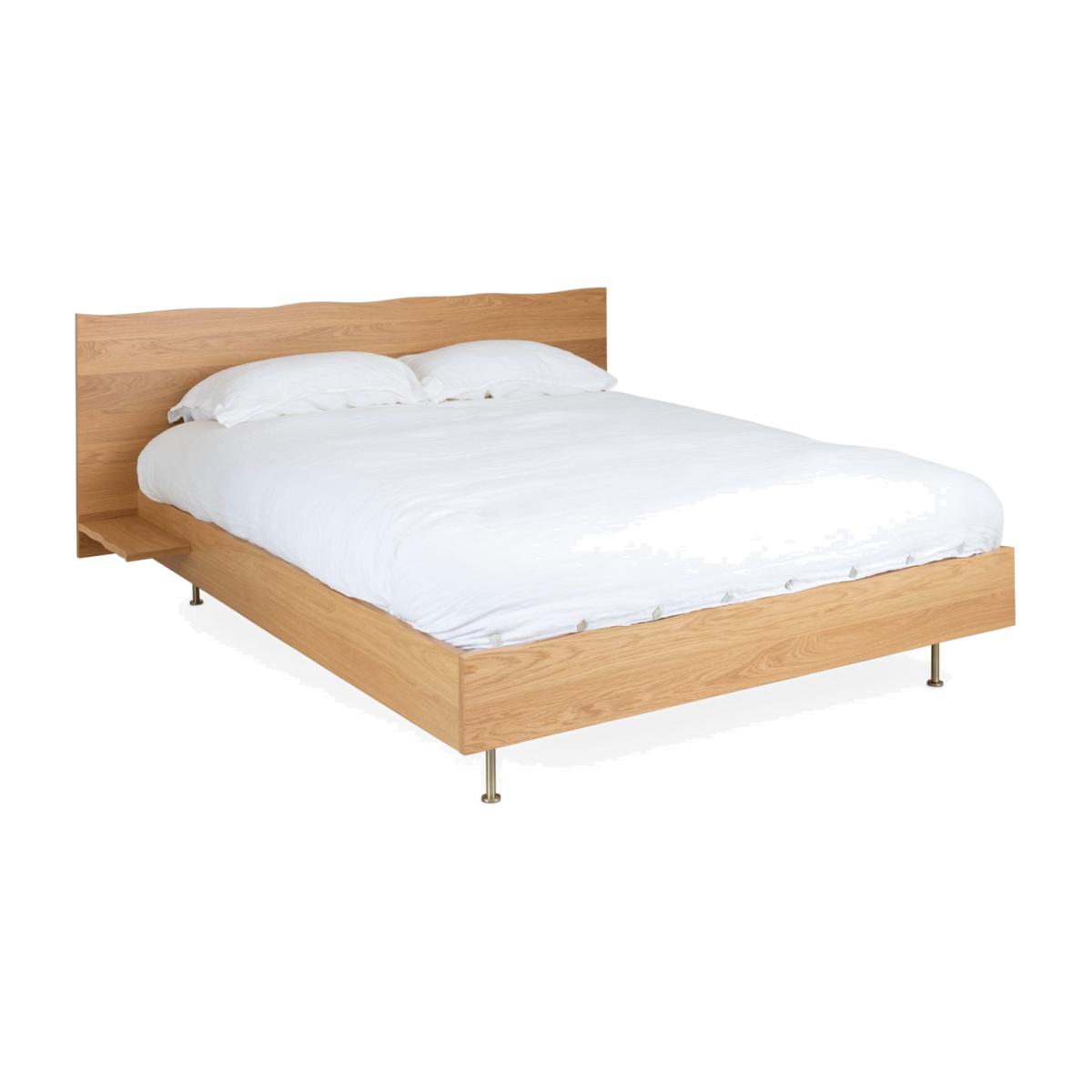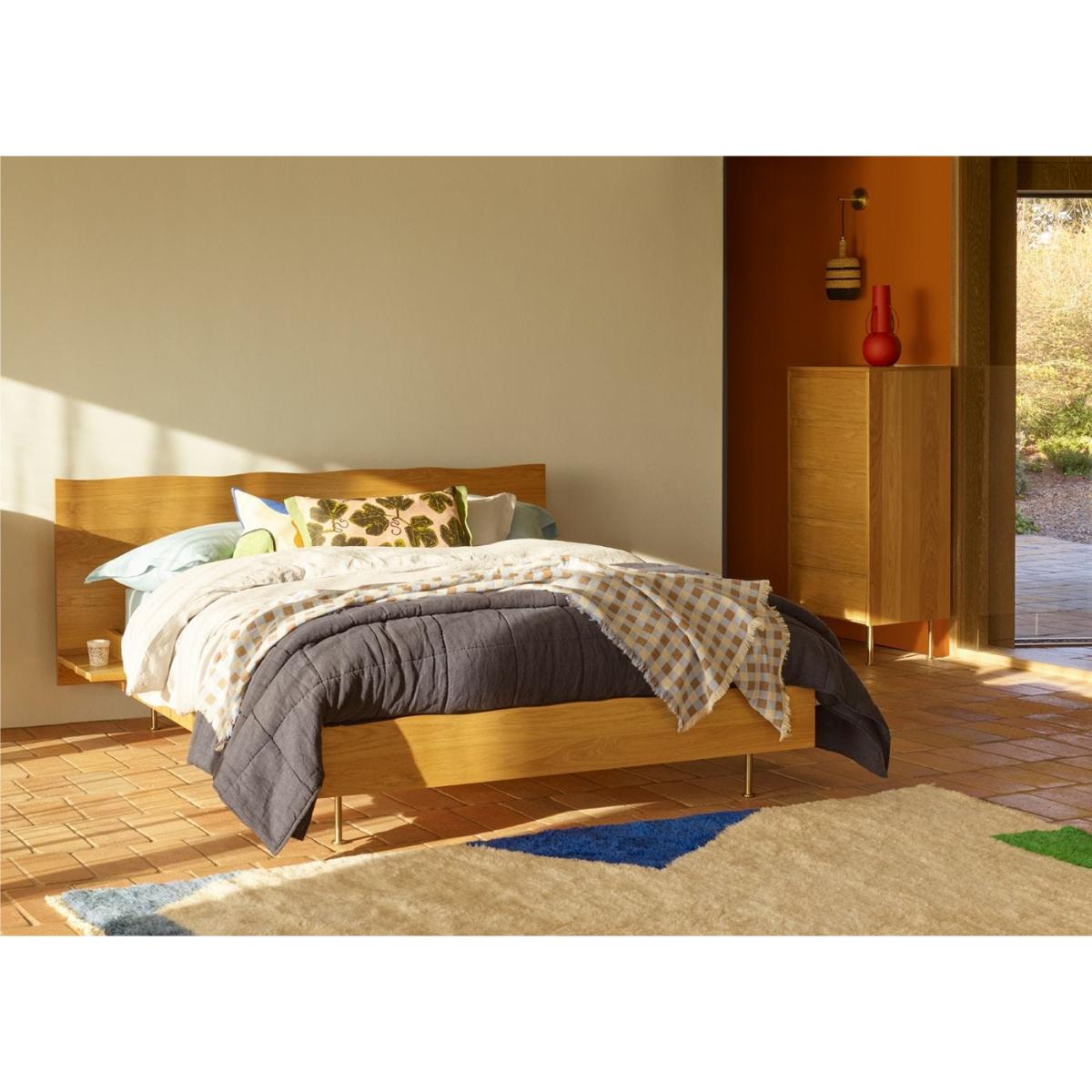 Designed by Danish studio Says Who exclusively for Heal’s, the Shiro king bed is inspired by biophilia, bringing the outside in by reflecting the beauty of nature. The frame is made from solid and veneered oak with gentle waved edging and a natural grain that gives it an organic look. This is emphasised by the top of the headboard and side rails, showcasing an irregular profile, while two built-in side tables provide a practical element. Completing the lightweight design are legs accented in brushed brass for added style.