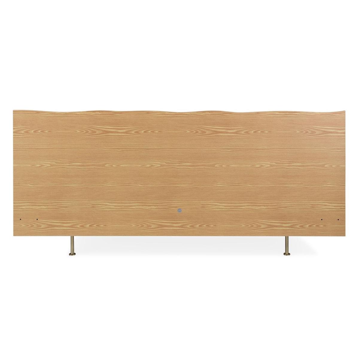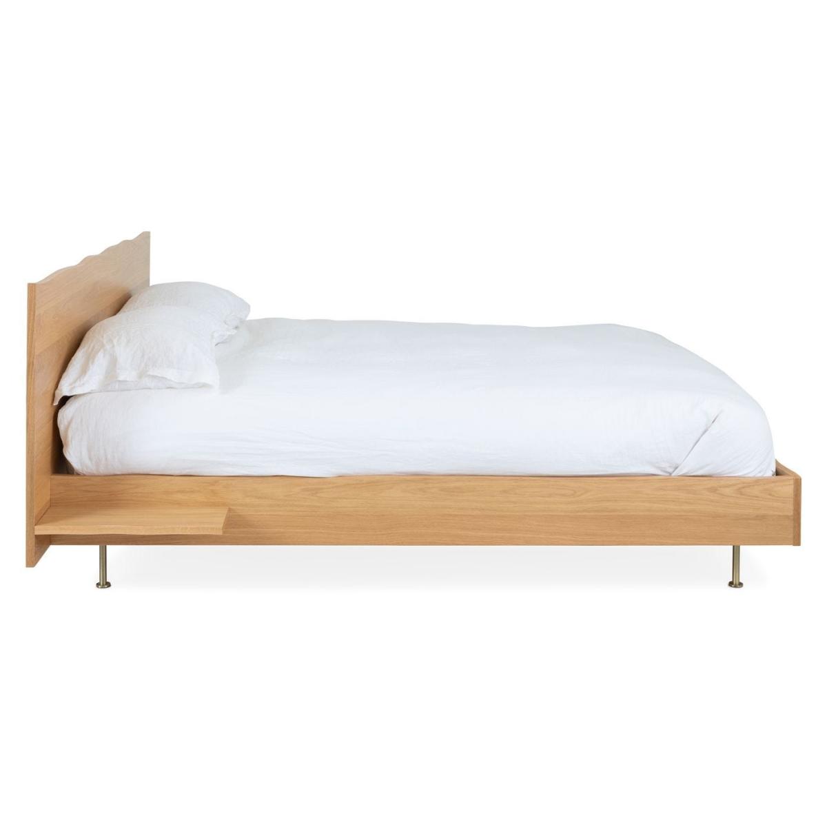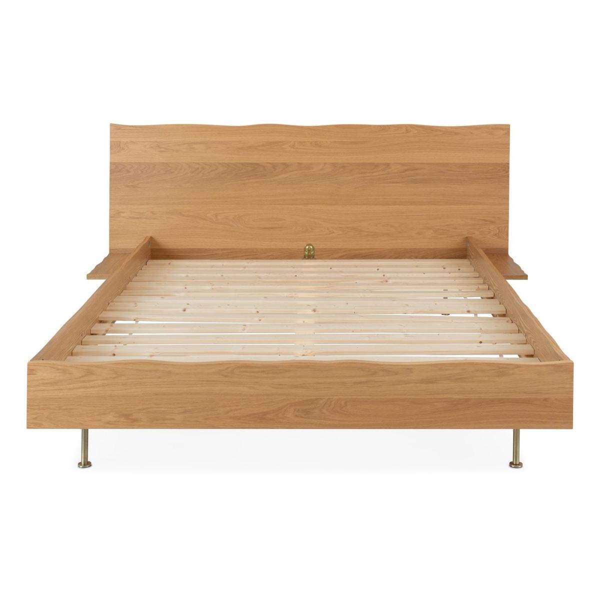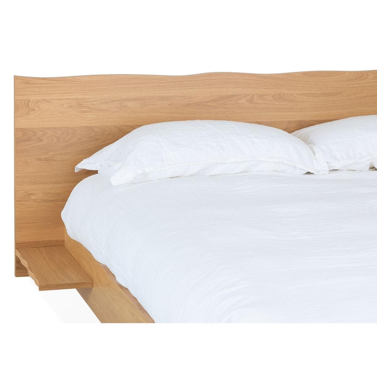 Designed by Danish studio Says Who exclusively for Heal’s, the Shiro king bed is inspired by biophilia, bringing the outside in by reflecting the beauty of nature. The frame is made from solid and veneered oak with gentle waved edging and a natural grain that gives it an organic look. This is emphasised by the top of the headboard and side rails, showcasing an irregular profile, while two built-in side tables provide a practical element. Completing the lightweight design are legs accented in brushed brass for added style.