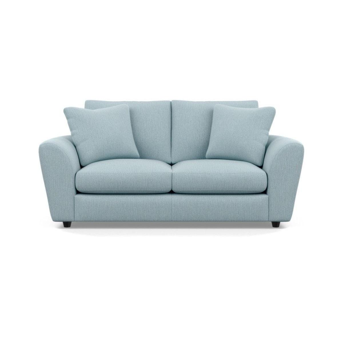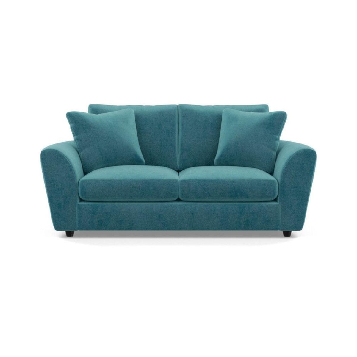 I love this sofa for its sleek, contemporary design and its versatile mineral blue velvet that adds a touch of understated luxury. It works particularly well in modern or minimalist interiors, where its clean lines can be a focal point, but it can also bring a subtle colour pop into more eclectic schemes. Practical styling tips include pairing it with textured cushions in neutral tones or contrasting patterns to enhance its plush feel, while black feet offer a sophisticated edge that grounds the look. It's perfect for creating a cosy yet stylish seating area, and its compact 3-seater size makes it ideal for both open-plan living or smaller spaces where comfort and style are equally important.