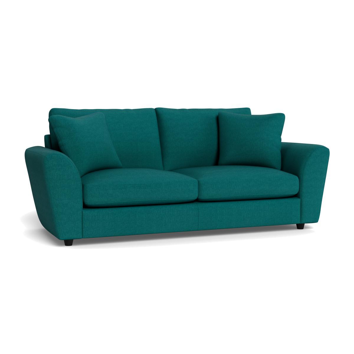 I love the sleek yet inviting look of this sofa, thanks to its traditional shape paired with a contemporary teal brushed cotton fabric. It works well in both modern and classic interiors, especially when used as a statement piece in neutral schemes. To style it effectively, consider adding patterned or textured cushions to introduce visual interest. Its dark pine feet provide a subtle grounding element, making it versatile for various flooring options. For a layered look, pair it with a cosy rug and minimal yet stylish accessories-it's equally suited for a relaxed family room or a stylish lounge area.