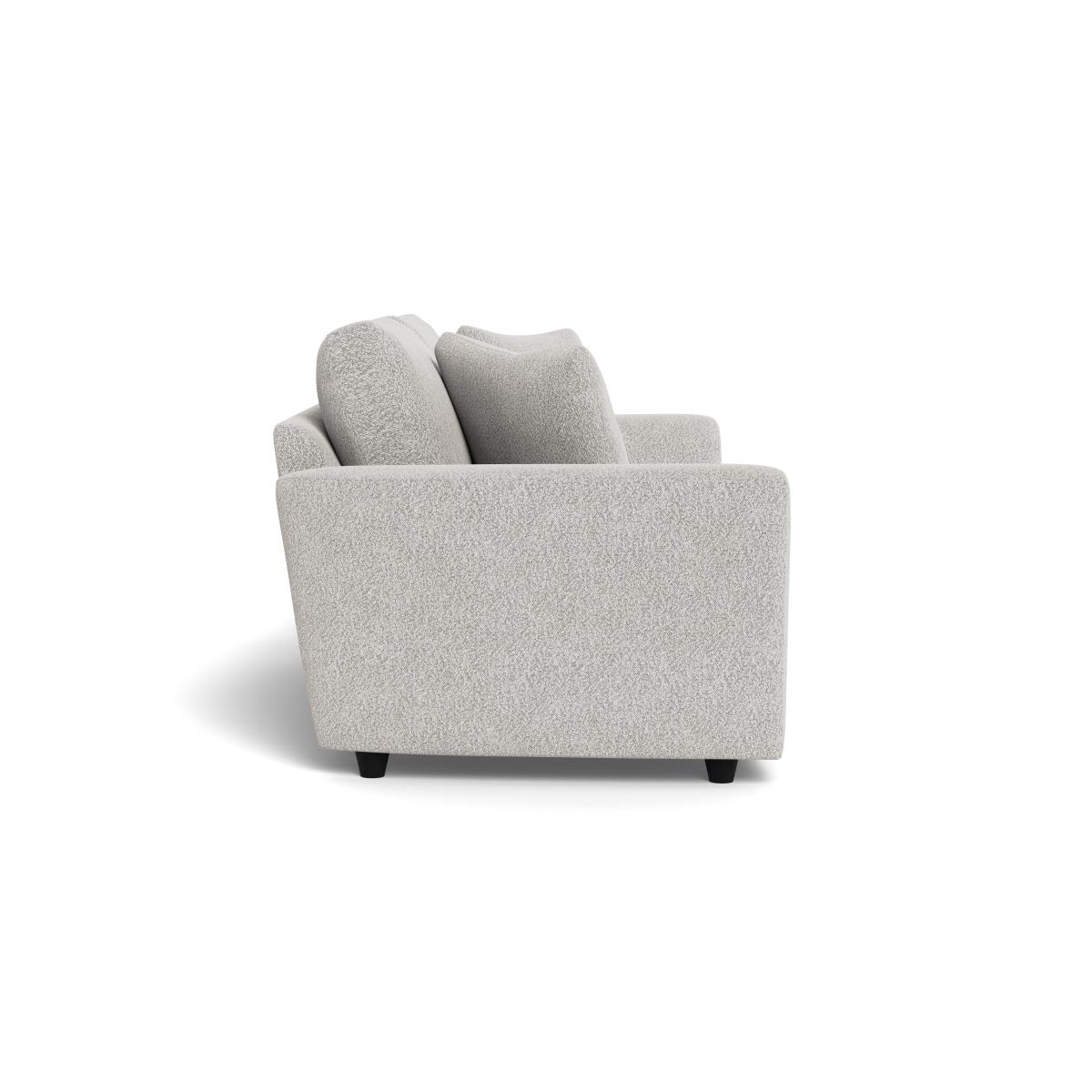 I love this sofa for its chunky boucle fabric and versatile design, which works especially well in contemporary or Scandi-inspired interiors. Its neutral ecru colour makes it easy to pair with a variety of colour palettes, from soft pastels to bold hues. The black feet add a subtle modern touch, providing stability and a slightly elevated look. For styling, consider adding textured cushions or throws in complementary shades to enhance its cosy vibe. It’s a practical choice for family living rooms or open-plan spaces where comfort and style are equally important. Just keep in mind that boucle fabrics can attract dust, so regular maintenance will help keep it looking fresh.